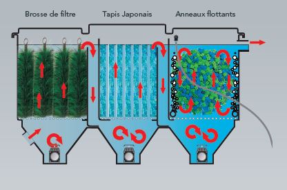 * toutes les circulations d'eau devraient se faire de bas en haut (up flow) donc sous les grilles, il faut ajouter une cloison a droite à 50 mm