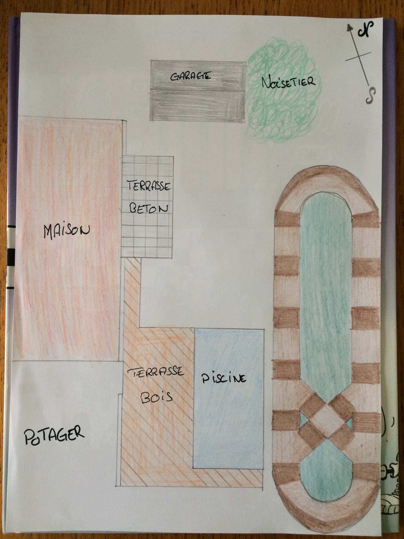 Pardon, j'ai l'esprit pratique : la piste va être en terre ou en dur ? Parce que en terre je ne suis pas sûre que madame apprécie la poussière que ça risque de ramener dans la maison, et la piscine ne va pas plus apprécier.