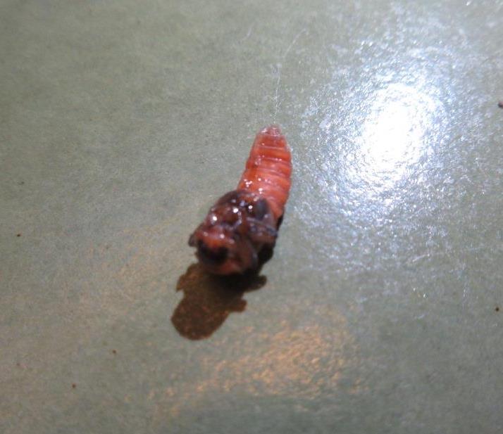 En retournant la terre du potager, j'ai trouvé ce qui ressemble vaguement à .. une crevette ? Petite la crevette, environ 1,5 cm. Mais bien rose orangé. Ce n'est pas le premier que je trouve.