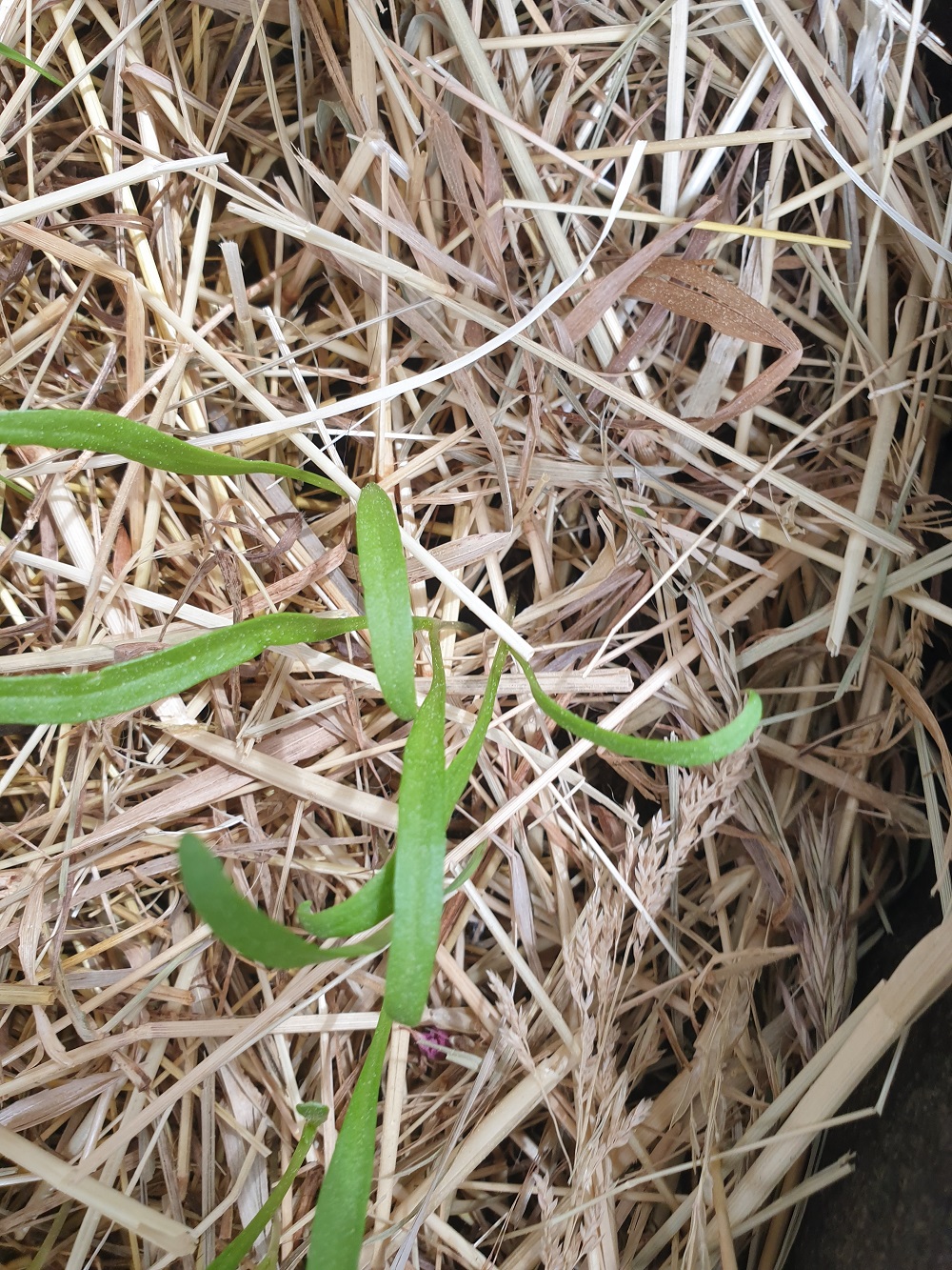 - j'ai mis de la paille vu qu'il fait toujours un peu frais et aussi que ça garde l'humidité.