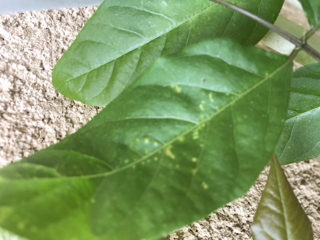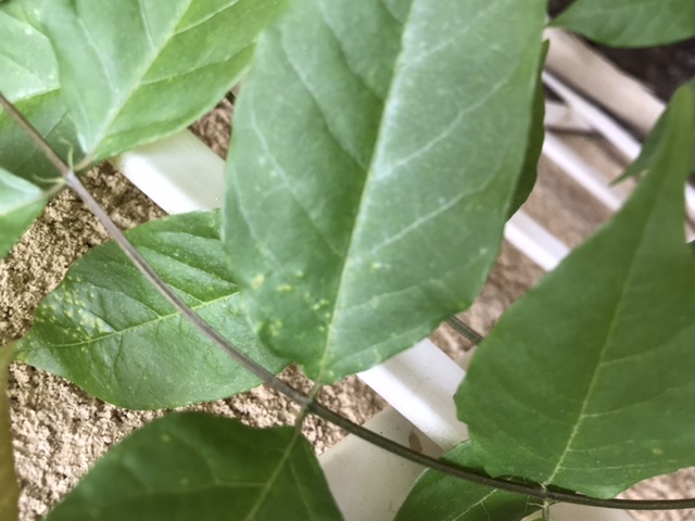 Comme l’année dernière à la même époque de l’année ma glycine commence à marquer des petits points sur ses feuilles.