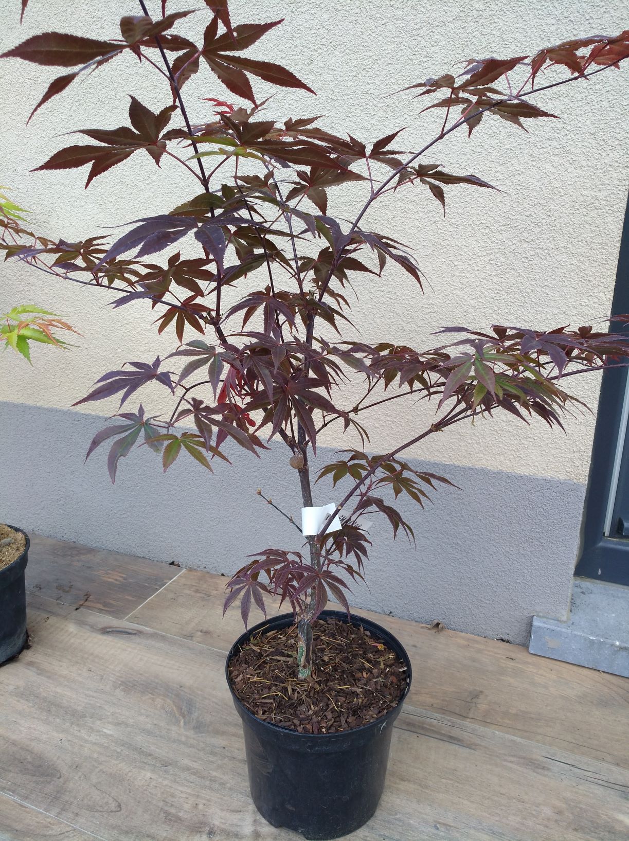 En ce qui concerne les pots je ne peux pas te répondre, mes érables sont en pleine terre.