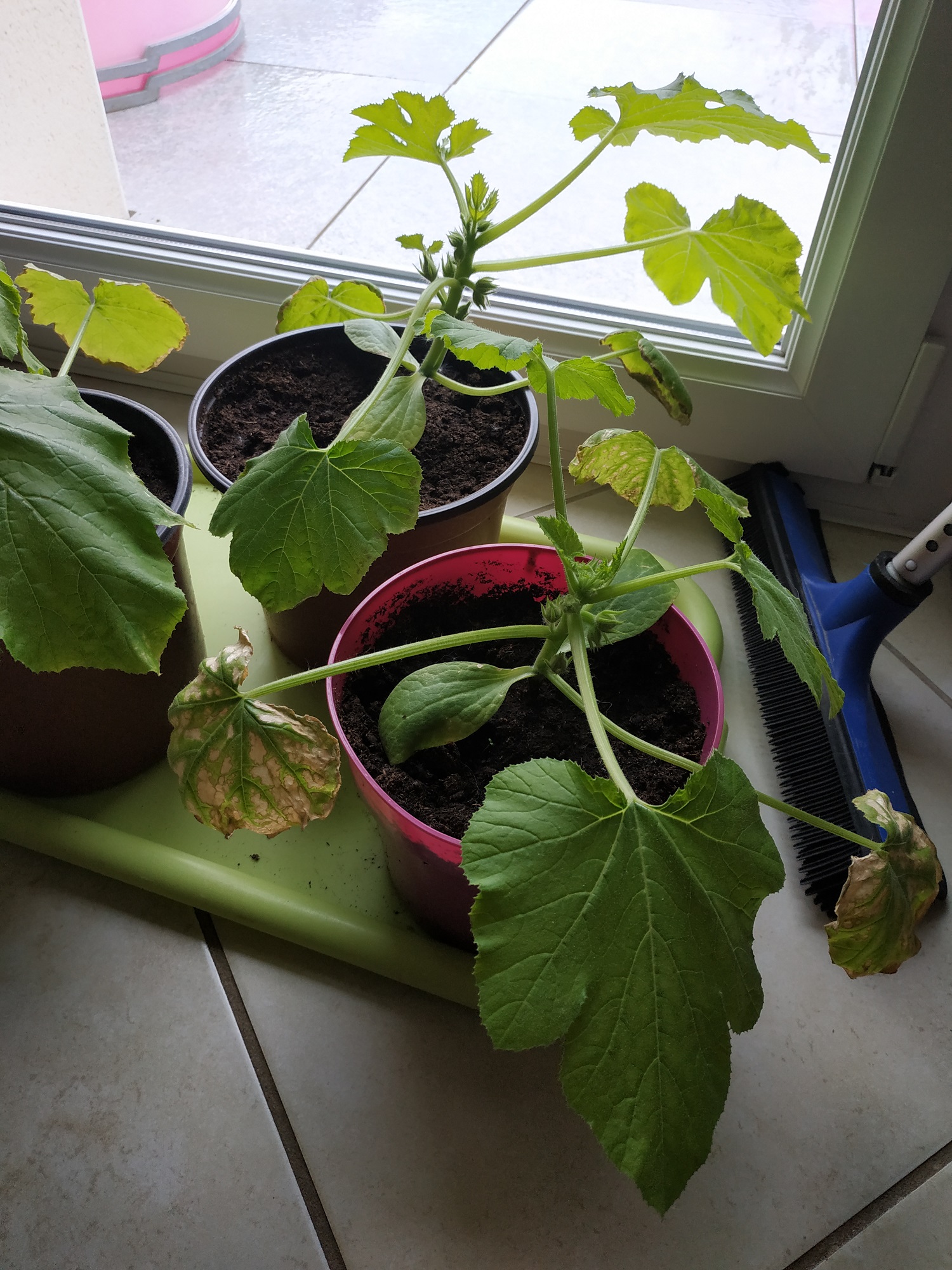 Ces courgettes sont bien trop développées pour être encore en pot.