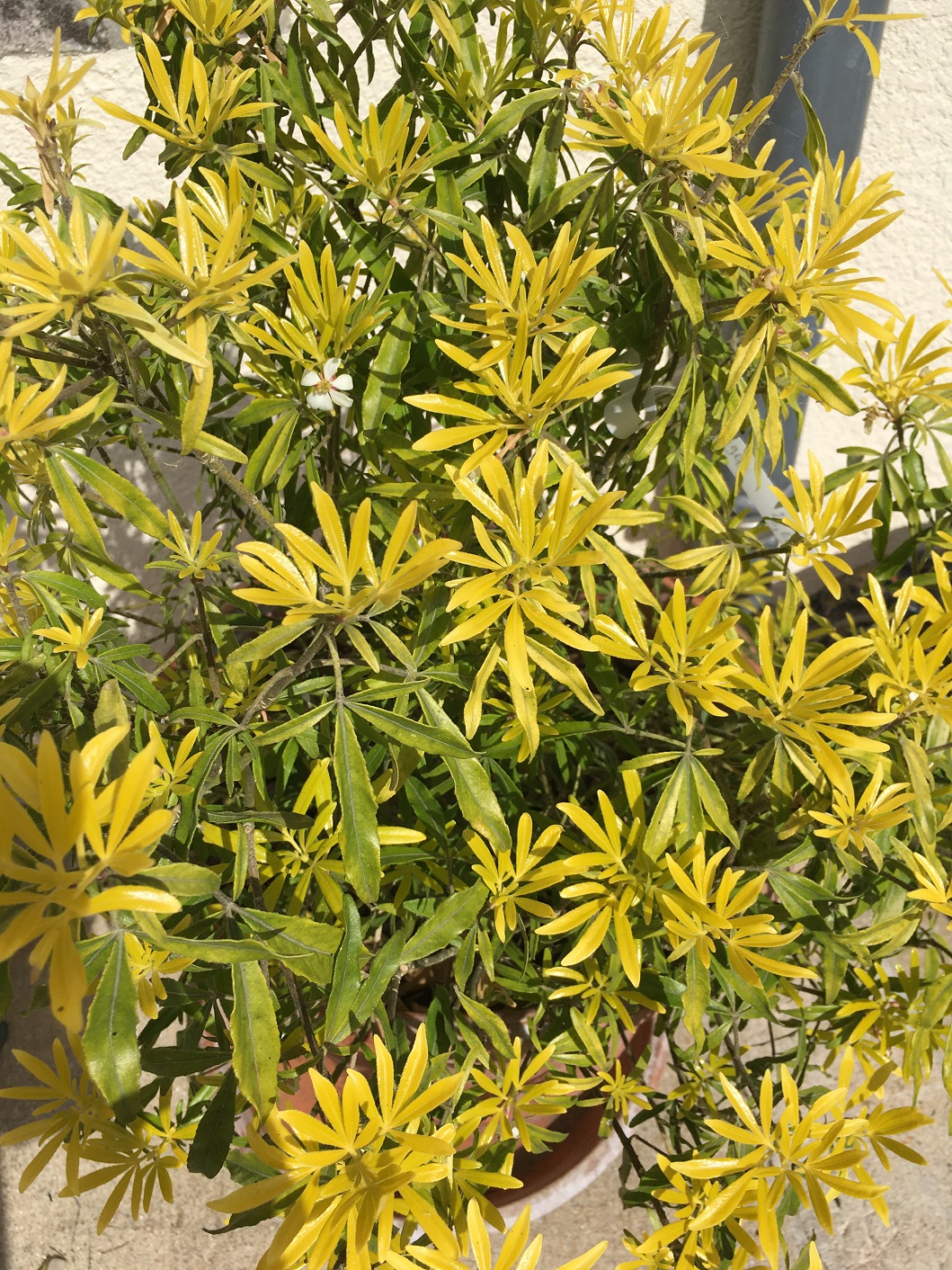 Et mon Choisya Goldfinger de l'année dernière (encore dans un pot) Juste pour le feuillage tout nouveau