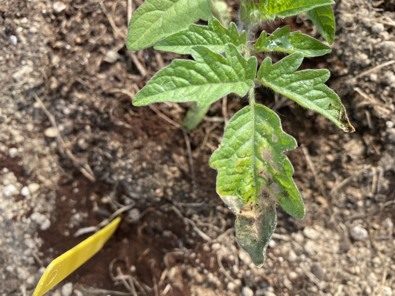 J’ai constaté ces derniers jours des taches qui arrivent sur l’extrémité des feuilles de plusieurs plants (les plus petits). Photos jointes.