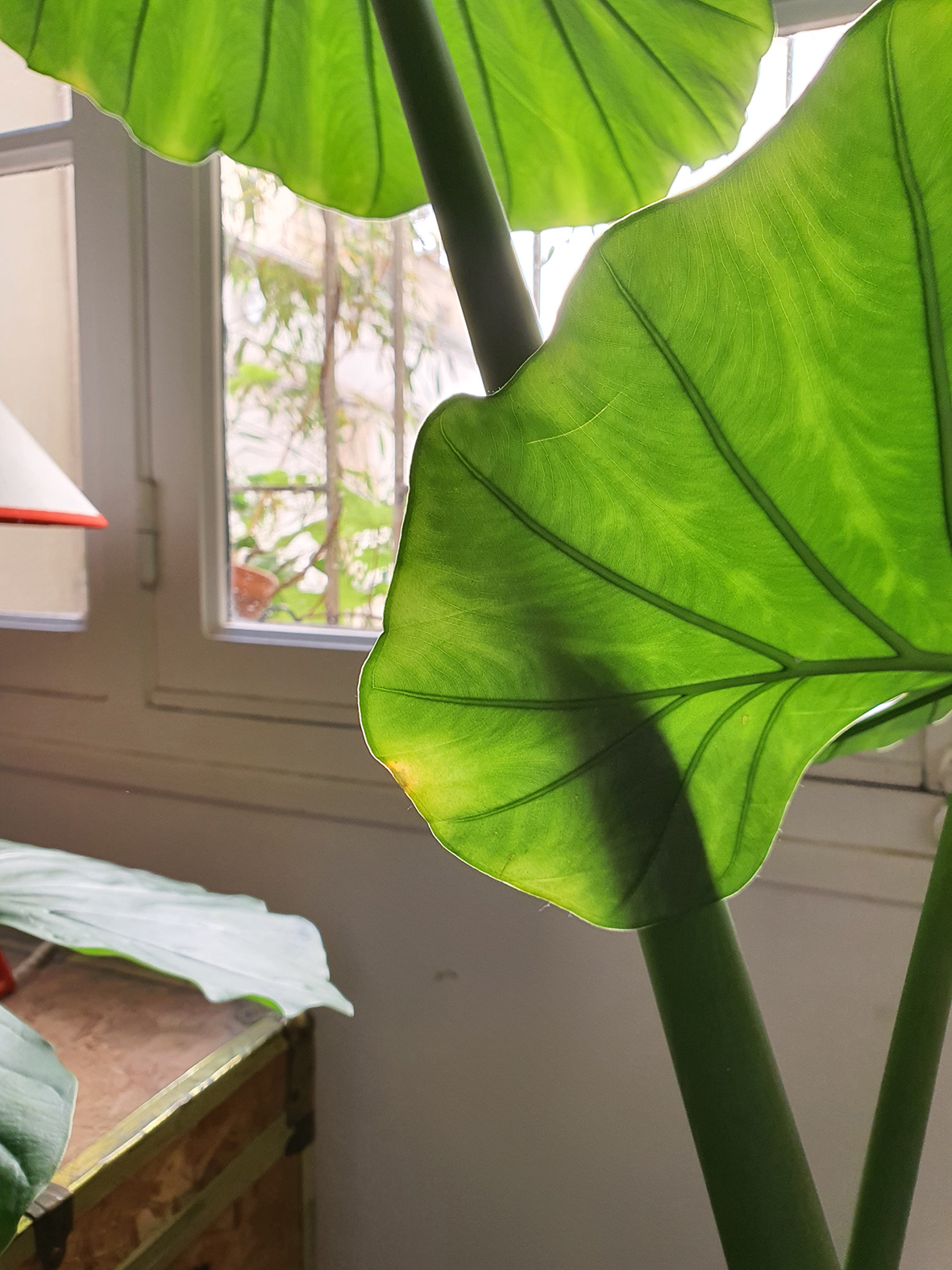- et enfin l'exposition lumineuse compte énormément pour les arrosages : on rapproche les plantes des fenêtres en hiver, c'est ce que tu as fais et c'est parfait, mais si c'est une exposition Sud ou Ouest il vaut mieux reculer un peu la plante en été. Grosso modo l'Alocasia va assez apprécier du soleil direct le matin, mais pas l'après midi, tout en ayant besoin d'un maximum de luminosité malgré tout. C'est pas une plante très compliquée mais elle est parfois pénible.