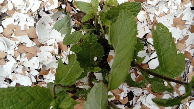dans mon jardin j ai repique de la menthe , un jeune framboisier ,un jeune mûrier , un jeune raisin du japon et un jeune groseillier