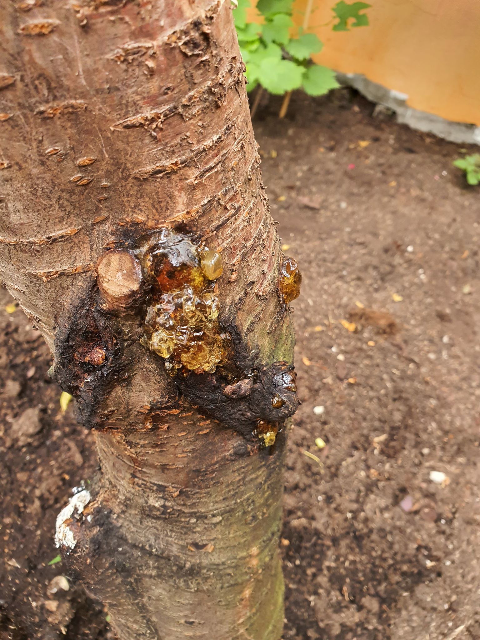 Problème 2, nous avons taillé l'arbre un peu (première fois depuis la plantation) et nous remarquons qu'il y a, à plusieurs endroits, ce "saignement" (voir image), désolé je ne connais pas le terme exact. Comment traiter ce problème ? Est-ce grave ?