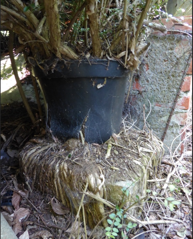 C'est pour cela qu'il faut virer le pot en plastique et ne pas hésiter à casser quelques racines pour qu'elles puissent se redévelopper le plus normalement possible. Cela aura une incidence celle de casser la vigueur. L'ajout de potassium favorisera le développement racinaire. Un bon paillage au printemps prochain est aussi une option intéressante.
