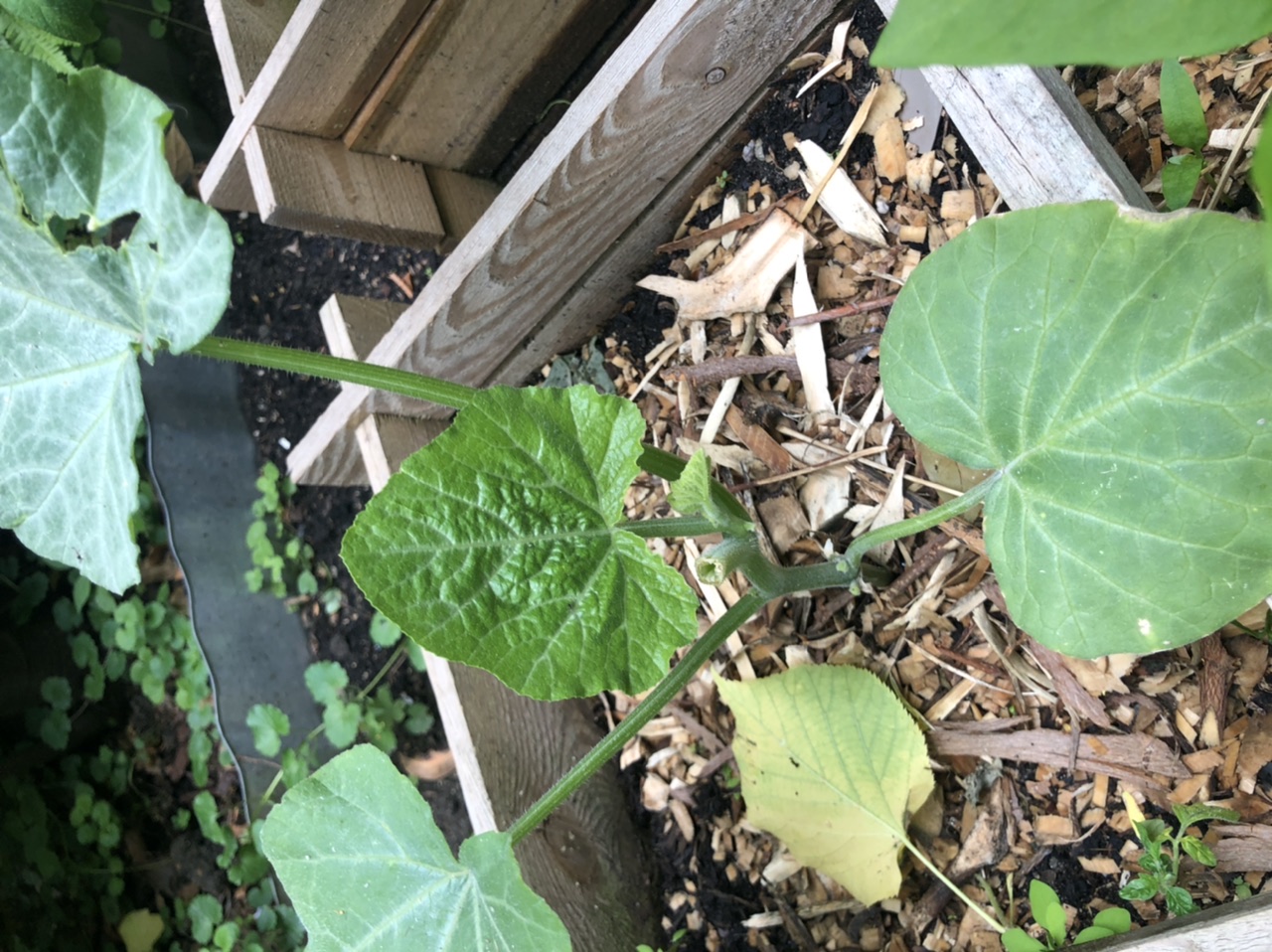 J’ai taillé un butternut le WE dernier, au dessus de la 3e feuille. Il y avait déjà un bourgeon à l’aisselle de cette feuille. Ce bourgeon a bien poussé, problème : je ne vois pas de ramification, photo à l’appui. C’est normal ?