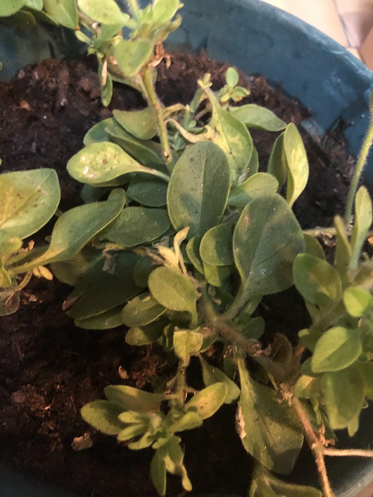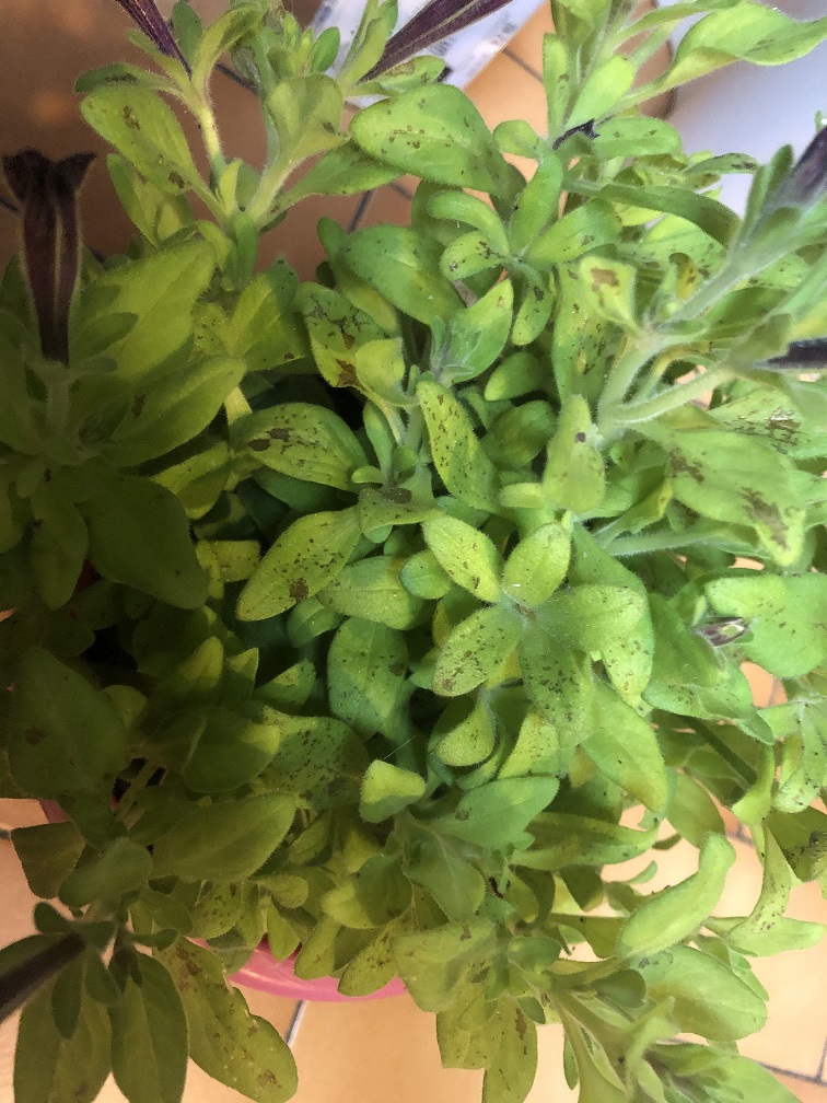 Depuis quelques jours je remarque des tâches jaunes sur les pétunias et des taches noires marrons sur d'autres plantes.