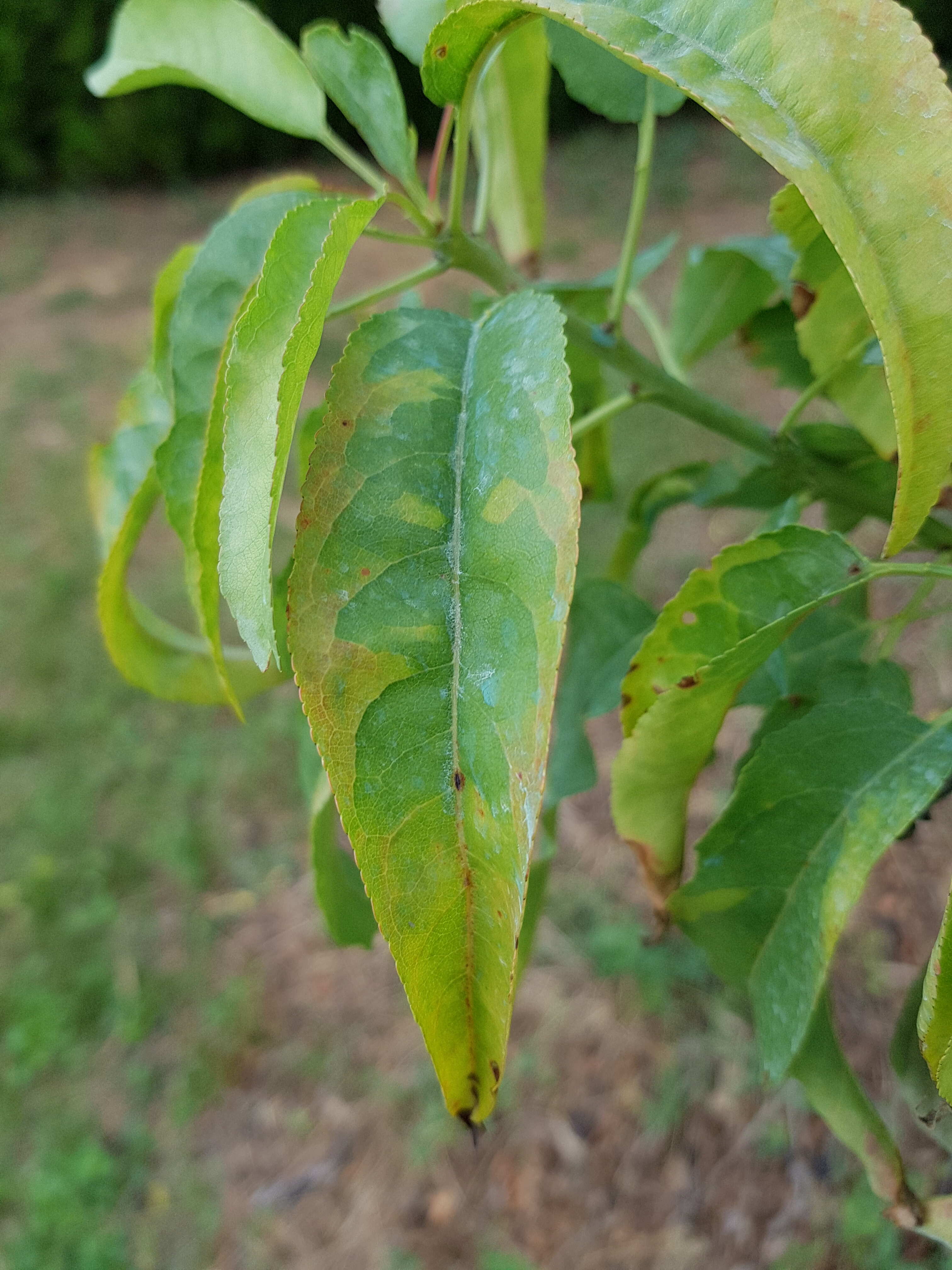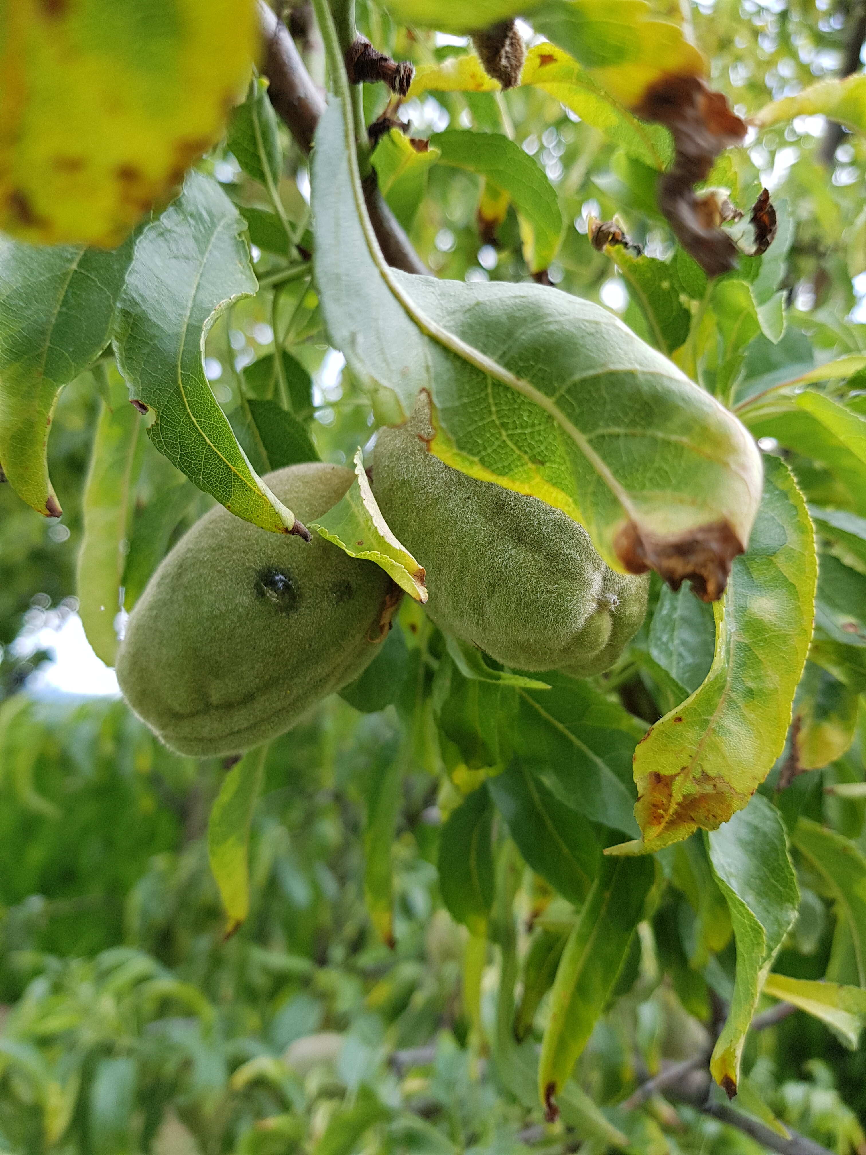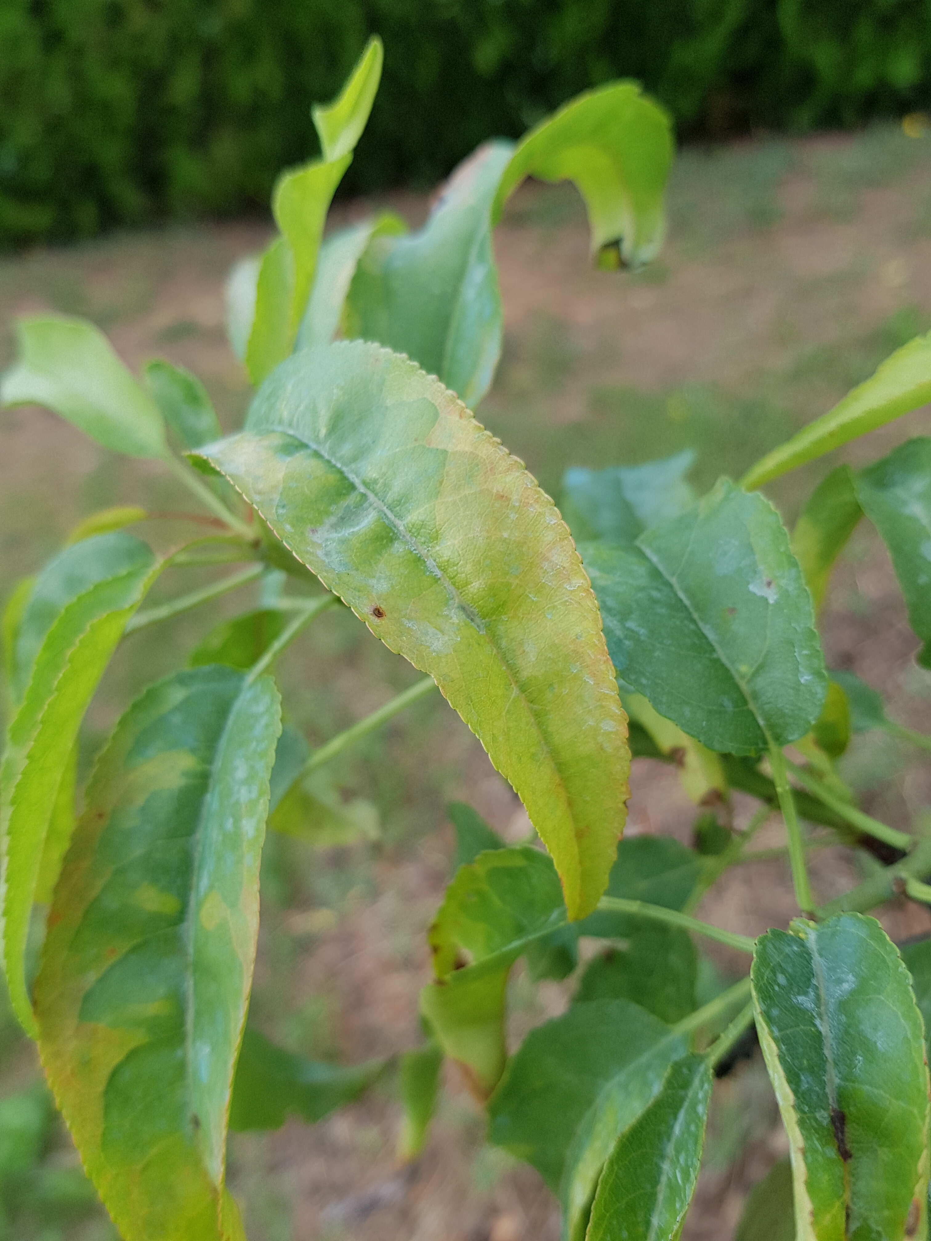 Depuis quelques jours j'observe une décoloration importante sur feuille d'amandier allant jusqu'au dessèchement en bout de feuille (photos).