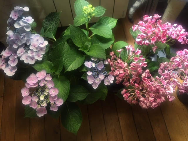 quand les hortensias baissent la tête comme ça c'est qu'ils réclament de l'eau.