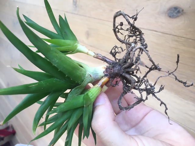 Autre raison à mes problèmes peut être: la plante étouffait? J'ai prélevé 4 de ses rejets il y a deux grosses semaines environ, un peu après que la plante ait commencé à se dégrader. Vous avez pu voir sur les photos, la tasse n'était pas grande et contenait au total 7 pieds, la plupart avec leurs propres racines - cela fait pas mal de monde pour peu de nourriture et d'eau (arrosages légers 1 fois toutes les deux à trois semaines et en surface uniquement, je ne connaissais pas la technique du bassinage)