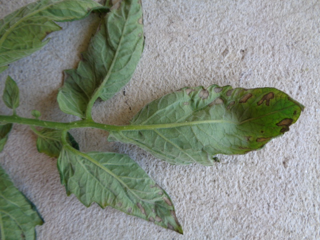 je ne pensais pas que c'était du mildiou sur les 2 dernières photos : les taches n'ont pas l'aspect blanc en dessous et il y a un halo jaune qui me fait penser à l'alternariose d'après le site de l'inra. Mais j'avoue que je trouve très difficile d'identifier ces maladie : beaucoup de symptômes se ressemblent.