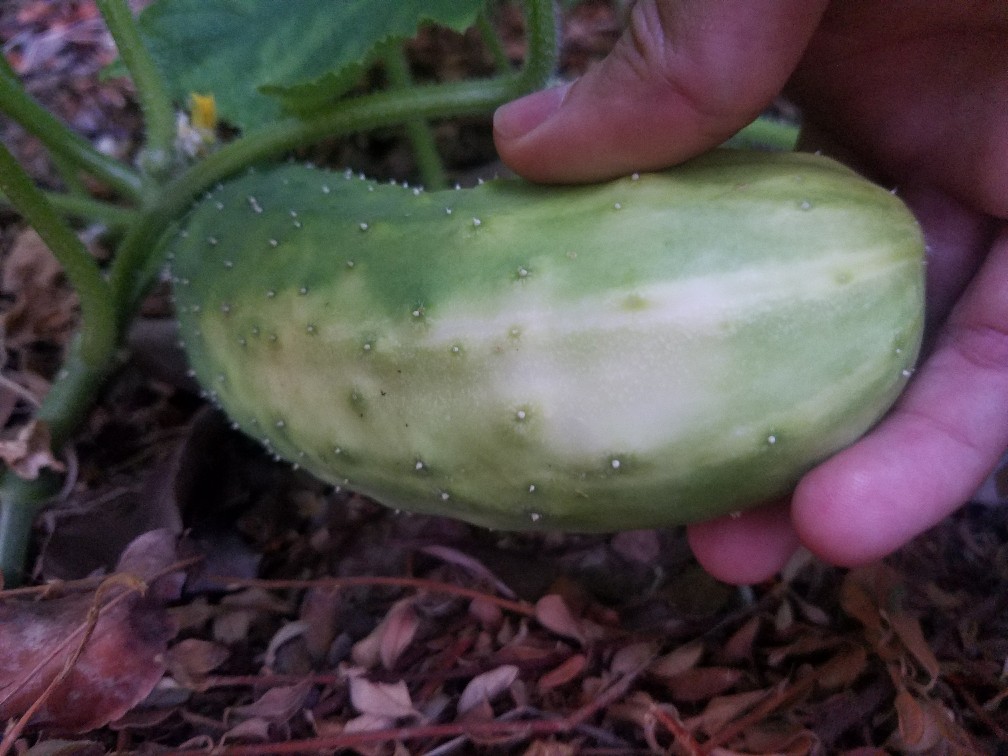 C'est la première fois que je cultive des concombres et j'ai un plant sur lequel il y a 2 légumes. Un est tout vert mais le second présente des décolorations jaune et blanche.
