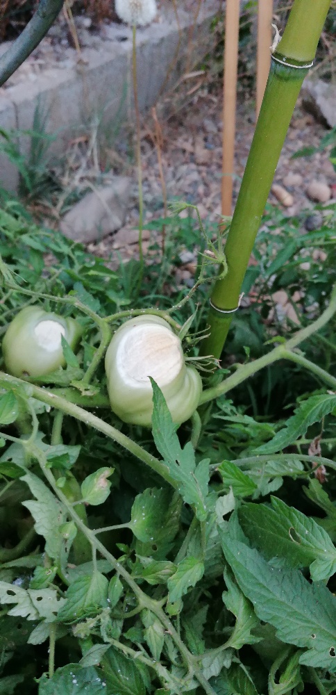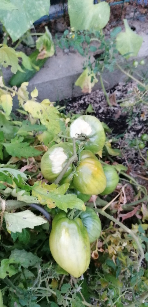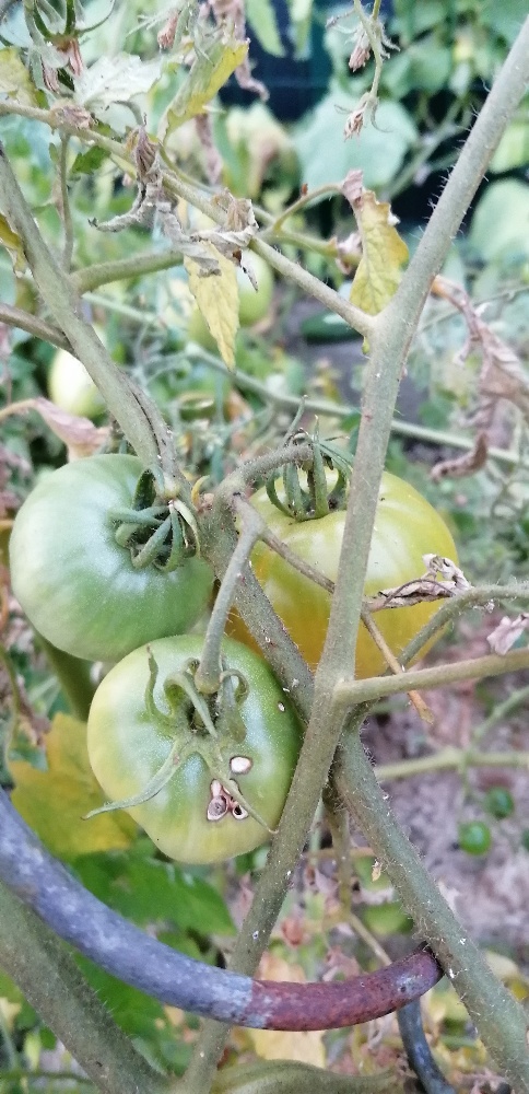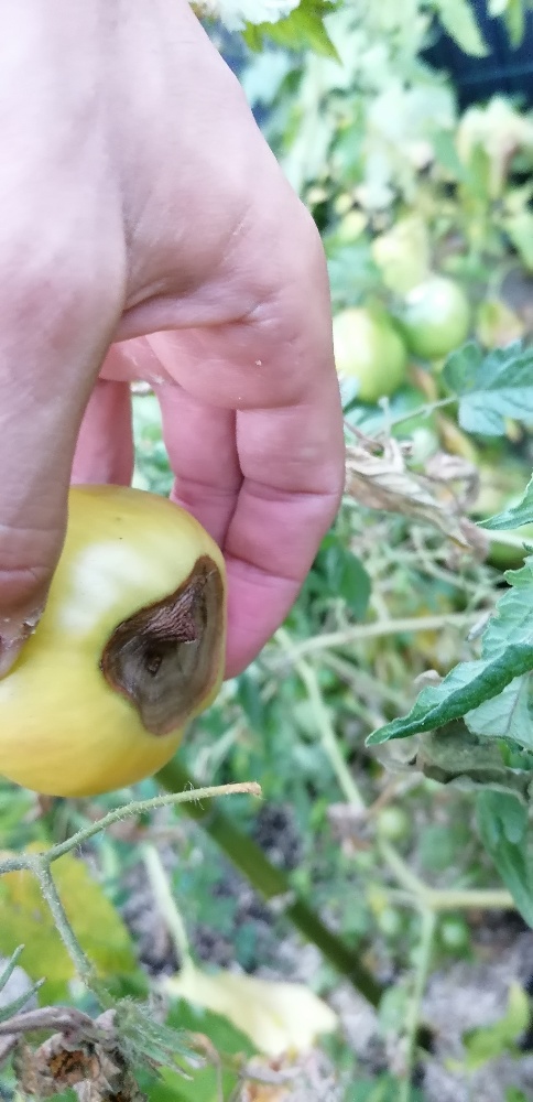 Bonjour à toutes et tous, comme beaucoup mes pieds de tomates, après une pousse fulgurante et belle fructification, montrent de sacrés signes de faiblesse !! Feuilles qui jaunissent puis se dessèchent (avec certaines portant des taches) et maintenant les fruits, qui pour certains, arborent ces halo blanchâtres et cette base noire.