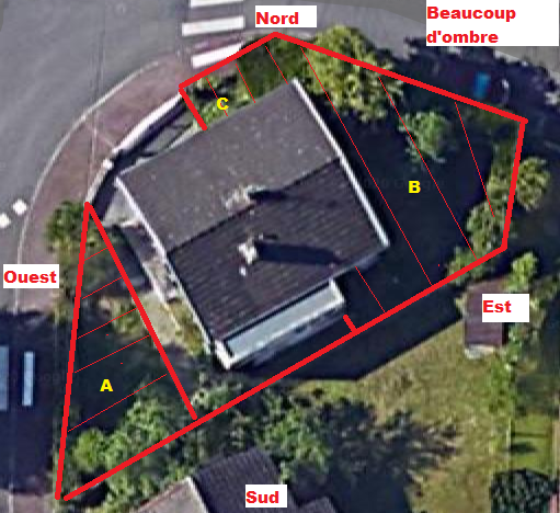 En gros, avec les maisons alentours, et les arbres, j'ai l'impression que mon potager sera souvent à l'ombre.
