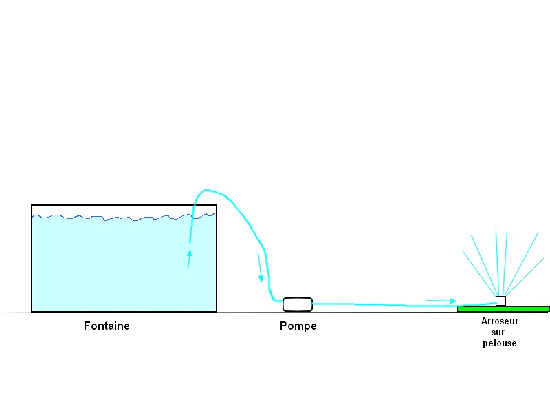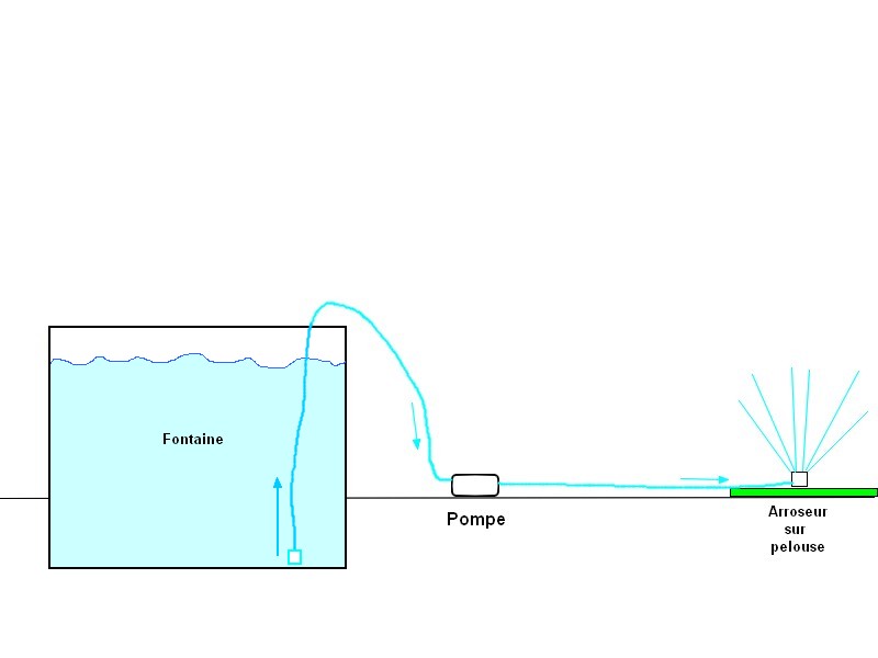 Je compte utiliser une pompe de surface pour arroser la pelouse de notre place en puisant dans la fontaine.
