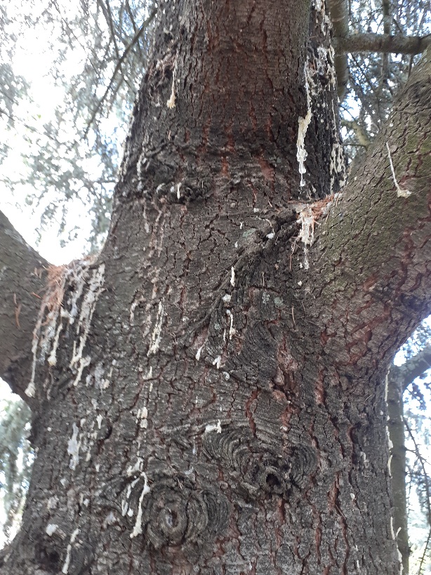 l epicea : a résisté a la sécheresse l'année dernière, puis une semaine après les premières pluies 75%de ses épines sont tombées brusquement. quelques nouvelles épines au printemps et il se met à suinter aussi, mais bien moins que le cèdre.