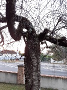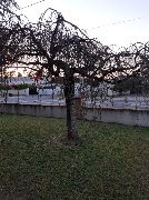 Au milieu a priori un cerisier japonais pleureur, l'identification est compliquée puisqu'il est désormais mort,