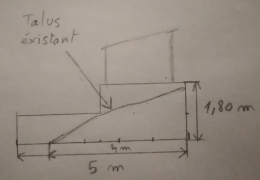 En photo un rapide croquis du talus existant en rapport avec ce que je veux faire .