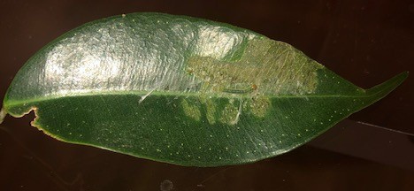 Je viens de me rendre compte que mon Ficus benjamina a des taches sur les feuilles et certaines sont tombées et collées entre elles.