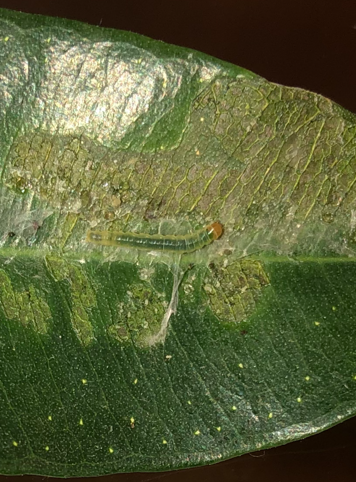 Petite chenilles verte sur ficus
