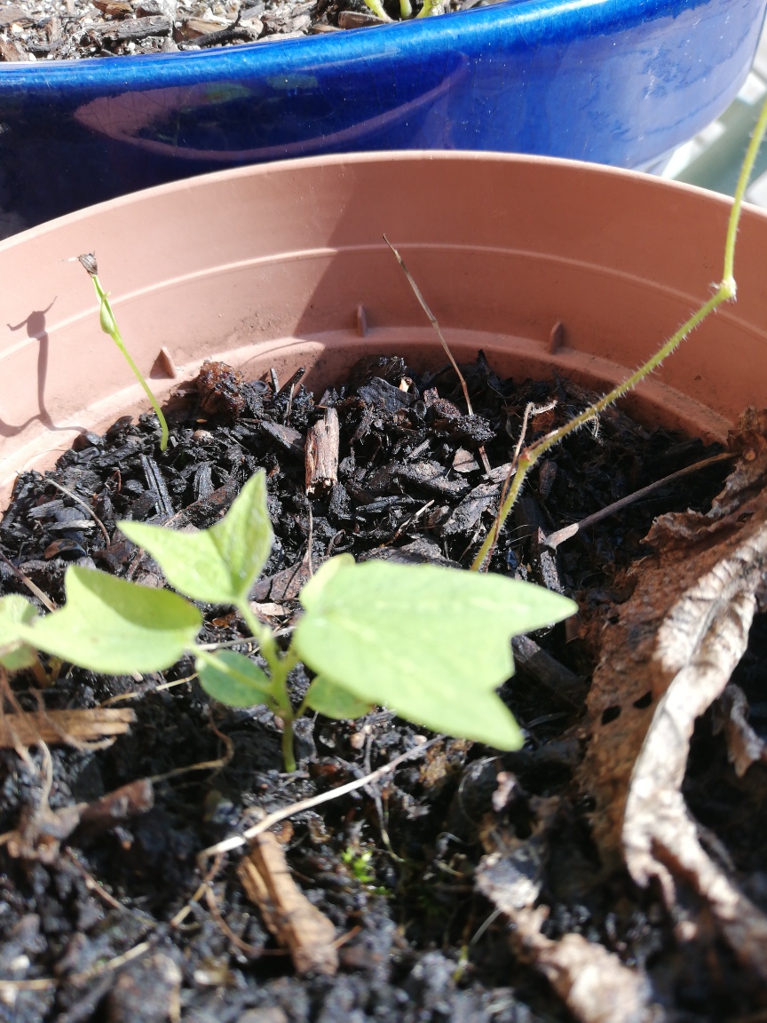 Dans un pot, a germé il y a quelques semaines cette plantule aux feuilles trilobées. Avez vous une idée ?