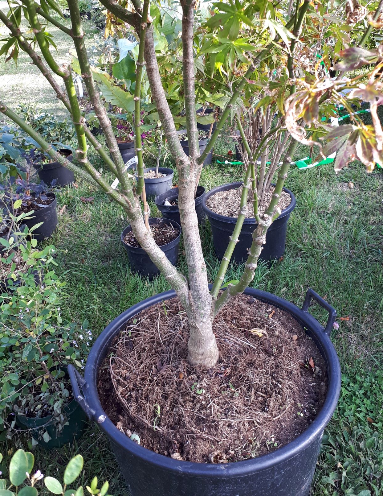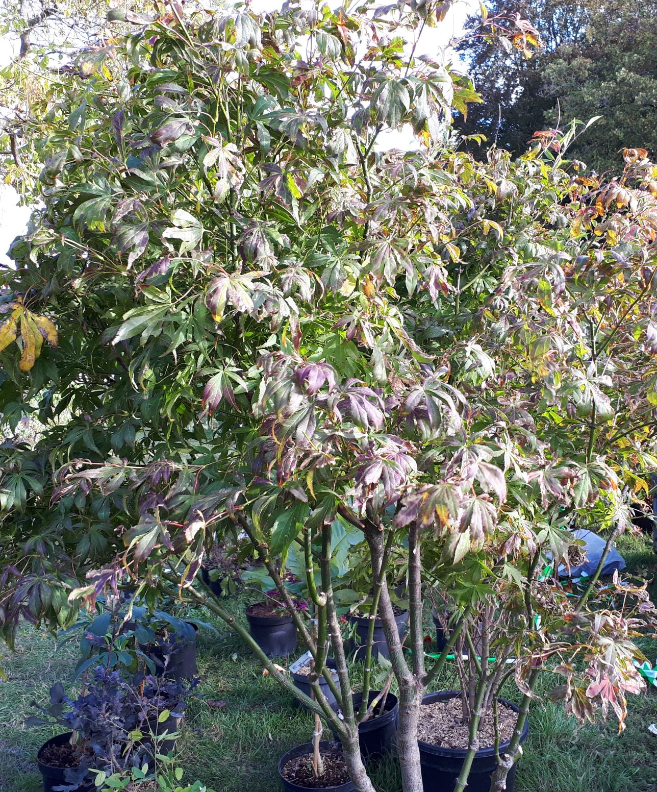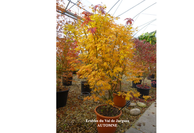 Une superbe sélection de la pépinière italienne Fratelli Gilardelli, proche de 'kinran' (que je reçois aussi fin octobre). Ici avec son feuillage vert-bronze d'été car placé à l'ombre suite à un dessèchement dû au vent. Les couleurs de printemps sont un beau rouge qui se margine de vert cuivré à la mi-ombre pendant l'été pour se transformer en un orange-jaune vif à l'automne. Magnifique ! Quelques photos pour vous faire une idée. Mon sujet est un vénérable ancien de plus de 2m, d'une quinzaine d'années, dans un container de 90L (trop petit pour lui).