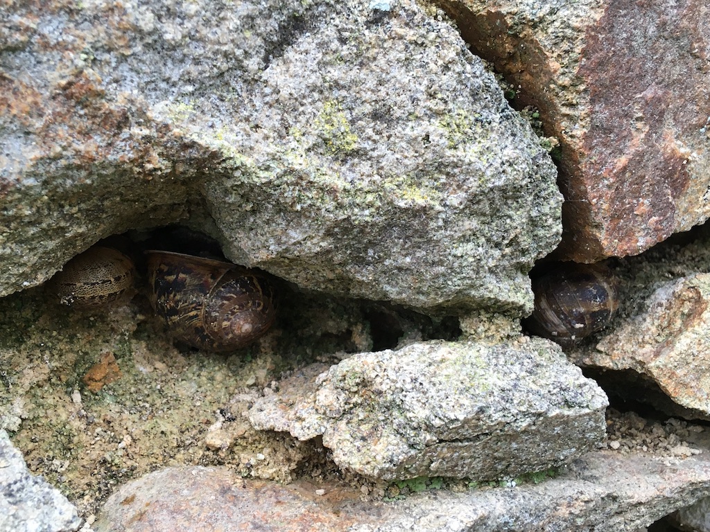 Il y a beaucoup d'escargots ici, mais il me semble qu'ils enterrent leur ponte d'habitude.