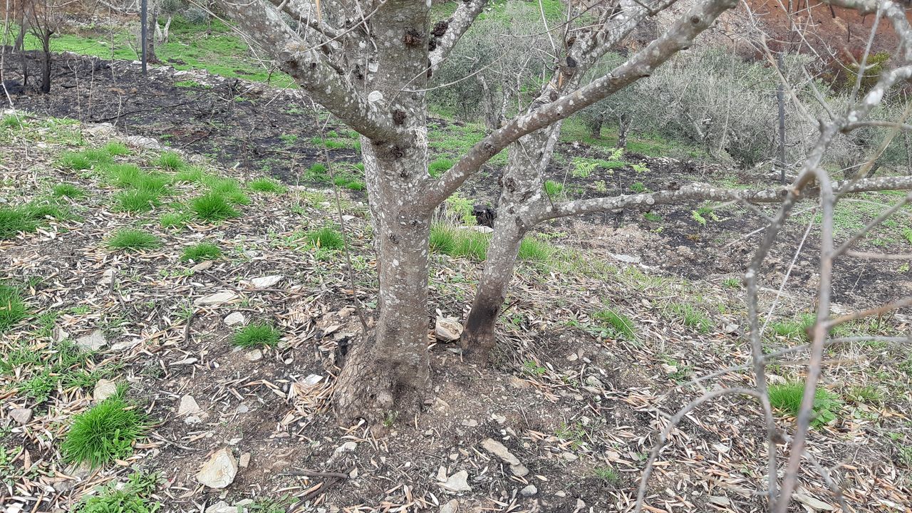 Bref, mi septembre une partie de l'oliveraie a été touchée par un incendie. Le feu est passé assez rapidement vu que le domaine est bien entretenu et débroussaillé. Il n'empêche qu'une dizaine d'oliviers "quadritoncs" ont eu chaud. Ils n'ont pas brûlé mais les feuilles ont jauni (et son tombées depuis) et les troncs ont par endroit un peu noirci (voir photos). Par ici ils ont la tronçonneuse facile et les gens me conseillent de carrément tout couper en me disant que ça va repousser. Bref, je me doute que ça va repousser mais ça me fait de la peine de couper des oliviers . En fait les personnes que j'ai consulté me disent que si je ne coupe pas, tout va bien se passer pendant deux ou trois ans mais qu'après l'écorce de l'olivier va commencer à peler et pourrir...