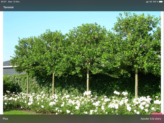 J’ai pensé à des photinias sur tige haute mais cela à un coût conséquent.