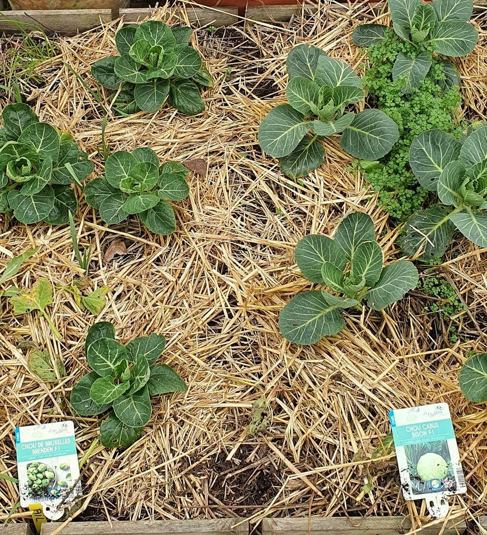 Bref ... je me retrouve en fevrier avec des choux de Bruxelles et des choux cabus, plantés fin octobre (voire même début novembre) qui sont beaux, ont résisté aux gelées ... mais ... mais ... sont totalement en retard par rapport à la saison .... pas de tiges donc pas de petits choux sur les Bruxelles et pas pommés sur les cabus ...