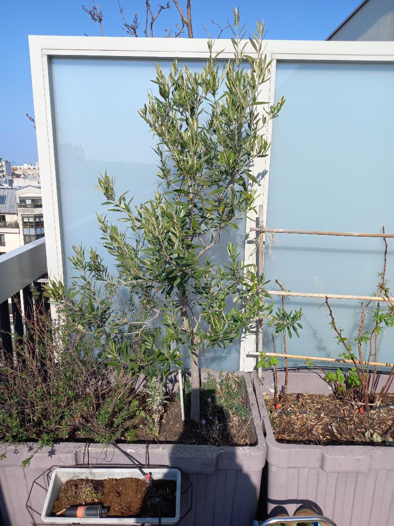 Me revoilà avec mon olivier quasiment 1 an après! Le constat est toujours un peu le même, il pousse en hauteur et j'ai du mal à lui donner une belle forme. Je suis preneuse de vos conseils de taille pour lui donner une belle allure!