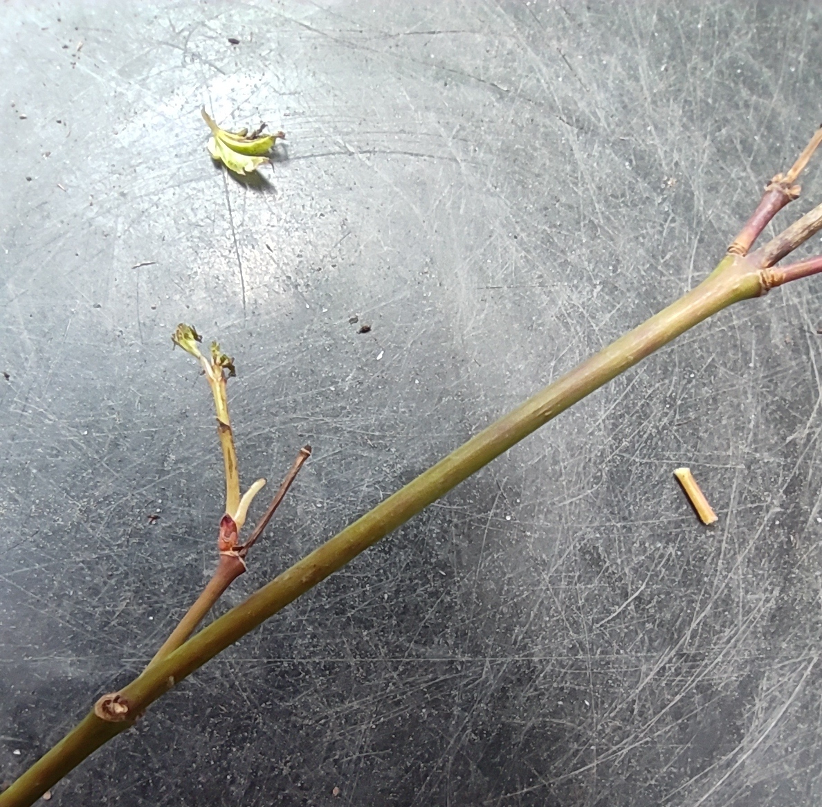 Quand une tige a poussé fort, la couleur de son bois est rougeâtre en hiver et les bourgeon sont également plus foncés que ceux d’une tige moins longue et moins forte.