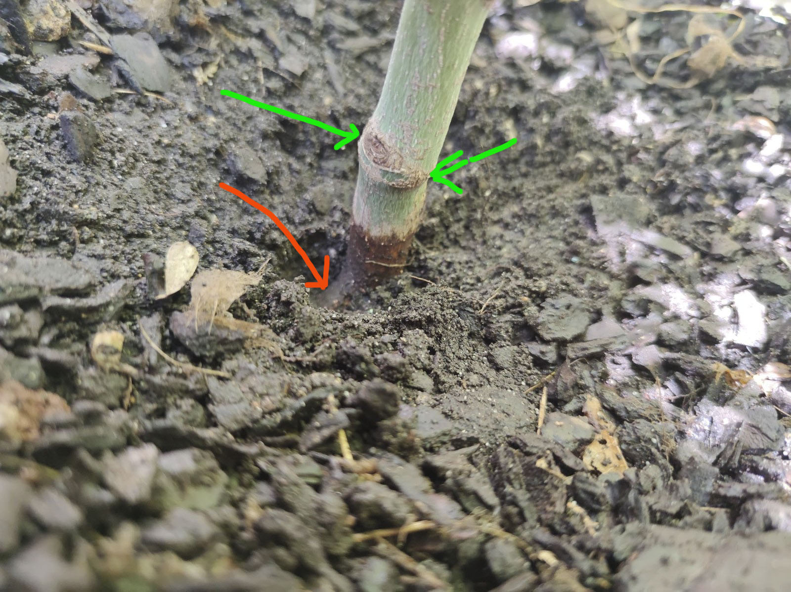 Soit il est greffé et la greffe est dans le substrat , dans ce cas ton érable est planté trop profond. Ecarte le paillis autour du tronc , gratte sur 1 ou 2 cm (ça ne lui fera aucun mal) et refaits des photos pour vérifier.