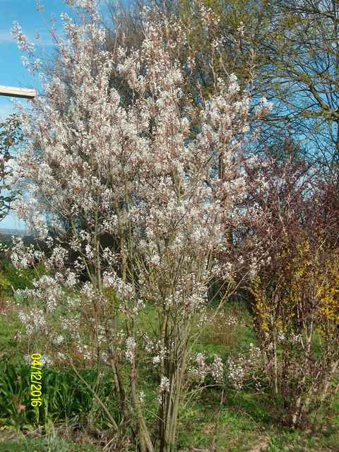 mes 2 Amélanchier lamarcki plantés l'un sur un talus et l'autre dans une haie forment à 20 ans et 27 ans des grands arbustes aux troncs multiples de 4m de haut et de large