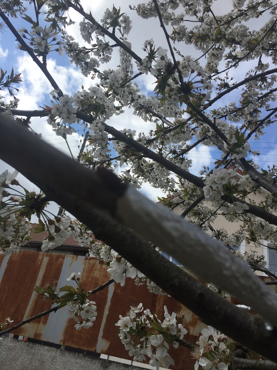 Mes greffes sont sur des rejets du cerisier du voisin, un à 20cm de la limite, l'autre à 1m. Ce cerisier ne donnait rien de bon, il l'a coupé cet hiver. Il pourra profiter des fruits de mes greffes qui seront au dessus de son terrain. Quant on a de bons voisins, tout est simple.