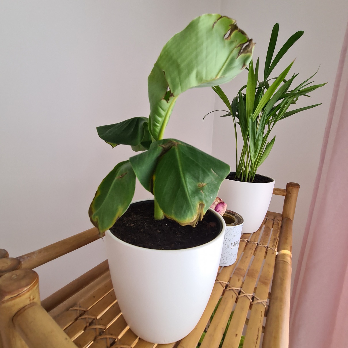 Mon bananier musa à les feuilles qui se grignote en marron. Il y a une feuille carrément avec un trou et du marron autour voir photos. Et aussi un spathyllum désolé pour l'orthographe, qui a les fleurs blanches qui commençait à s'ouvrir, j'étais content mais quelques feuilles se grignotent aussi en marron. Mes 4 plantes sont sur étagère devant la fenêtre avec un rideau voilage. J'habite en Île de France donc hormis cette semaine ou il a fait très beau c pas encore ça. Je les ai arrosé 1 fois par semaine . Je les ai depuis 2 semaines seulement. Alors ma question trop d'eau?, pas assez? , trop de soleil? Pas assez? Maladies? Enfin que faire j'y tiens et n'aimerai pas les perdre. Merci pour votre aide.