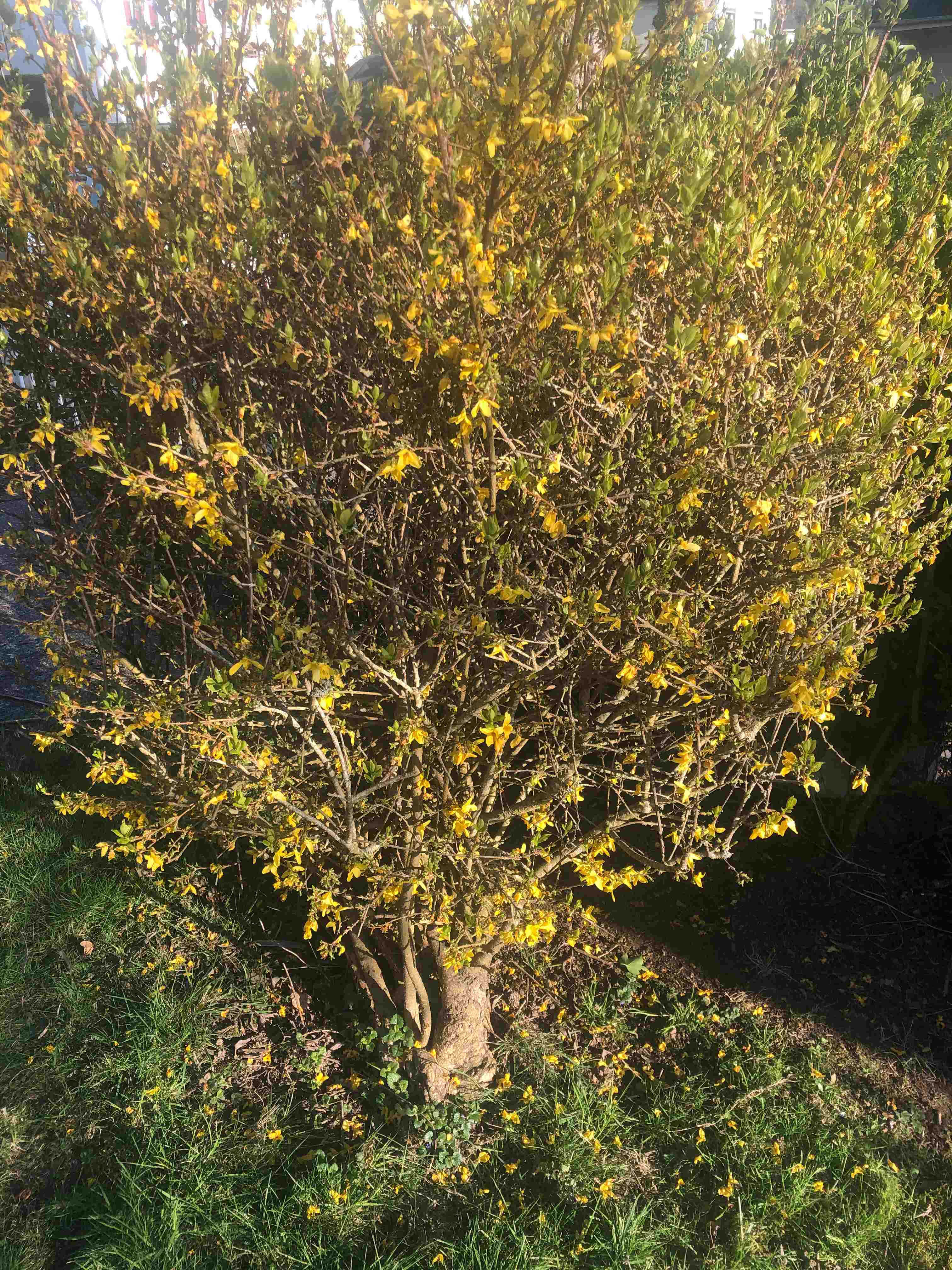 Voilà une petite haie de forsythias que j'ai faite avec des boutures faites à partir de papa forsythia.