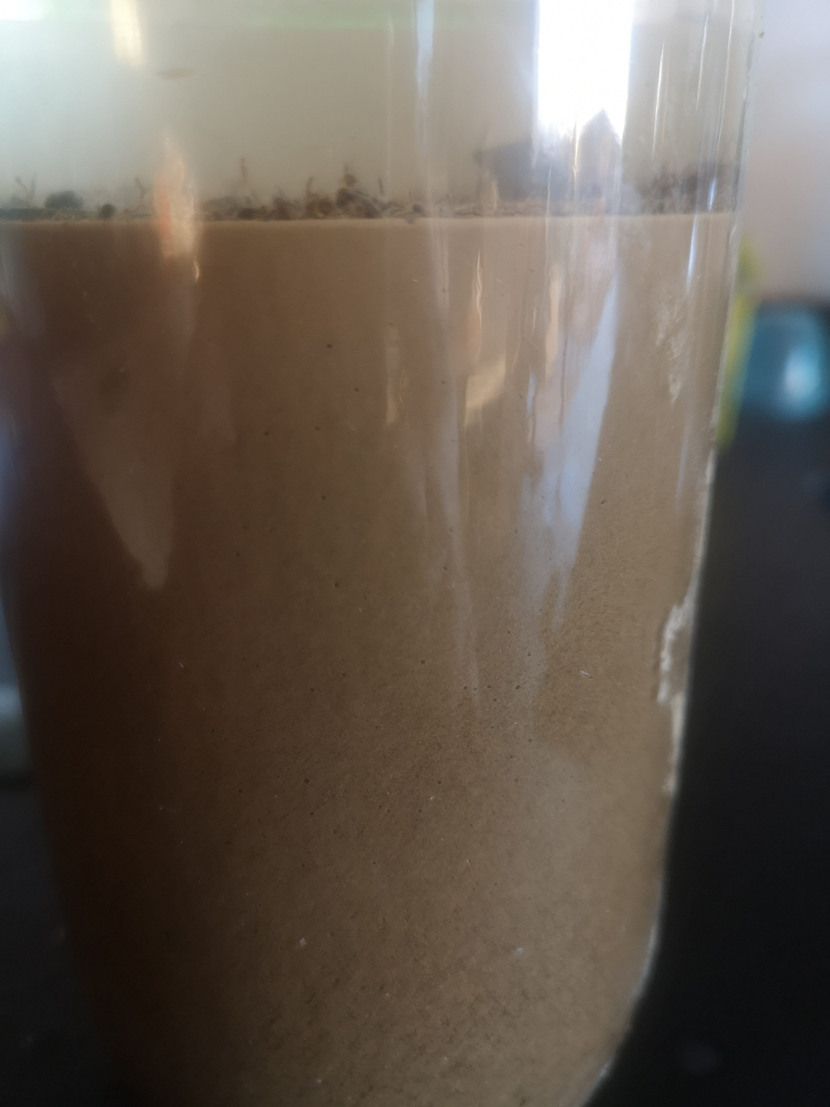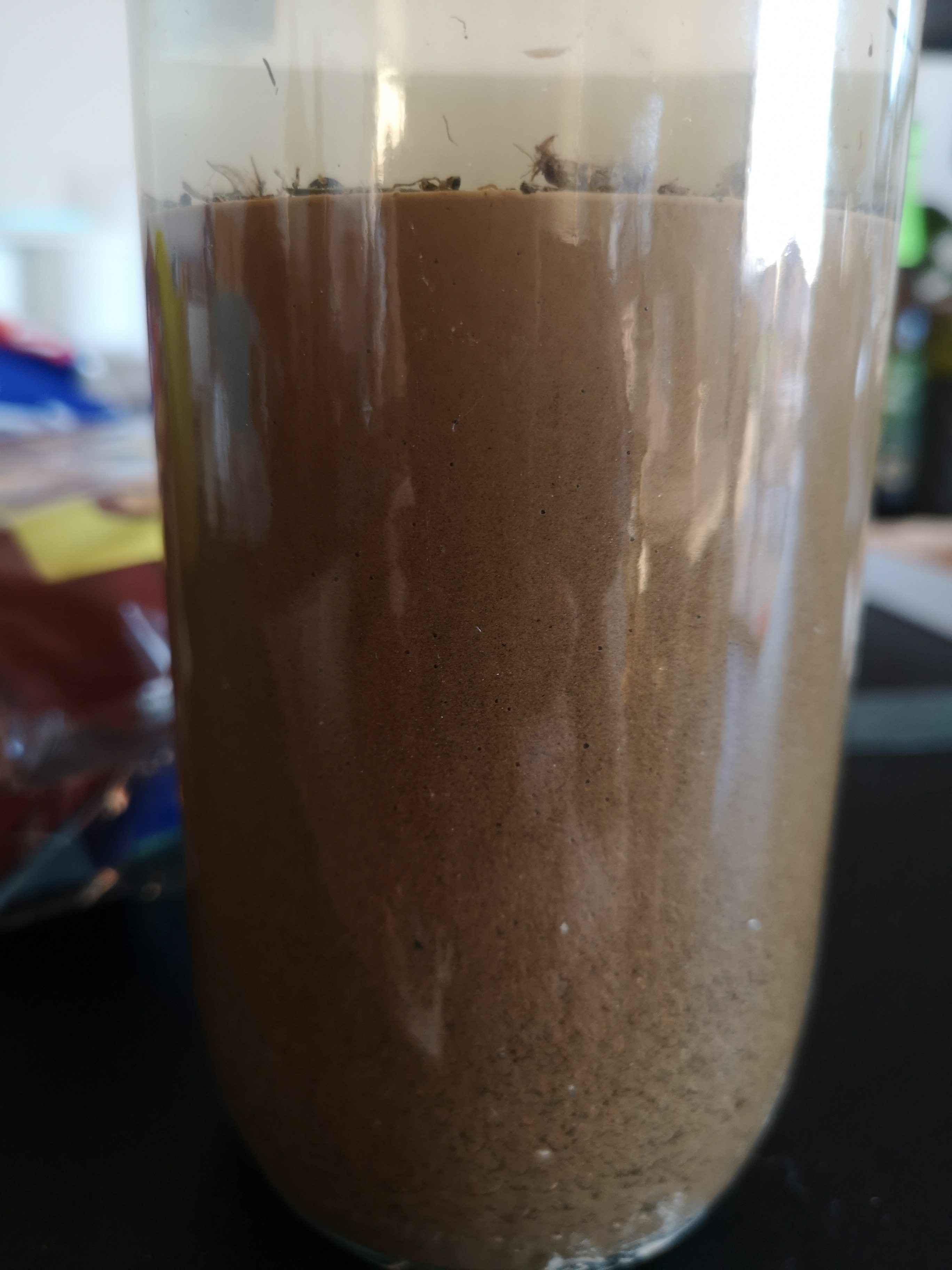 J'ai fait le test de la bouteille pour identifier les différentes strates mais j'ai du mal à interpréter les résultats. Voyez vous sur les photos jointes du limon par ex ?