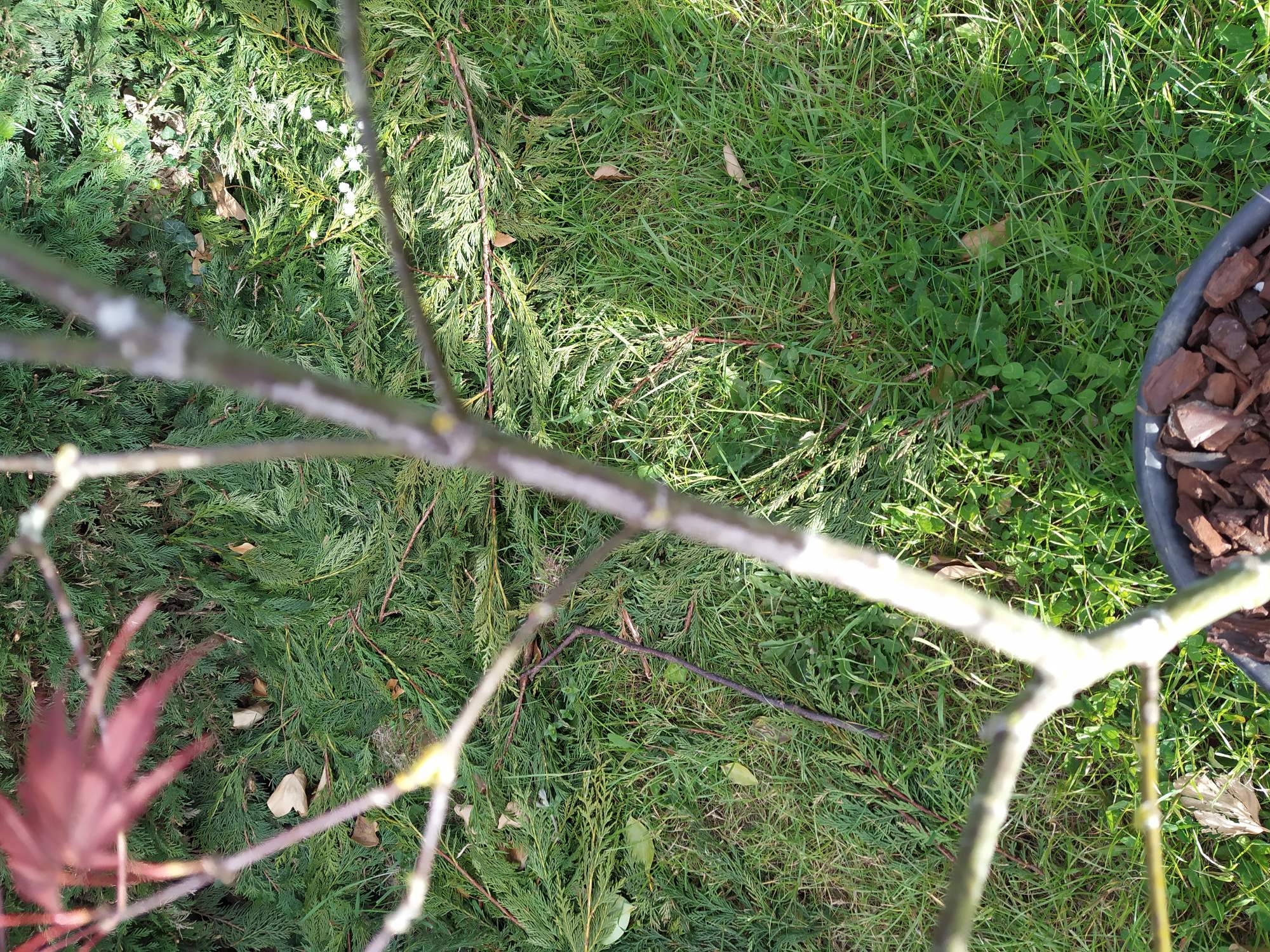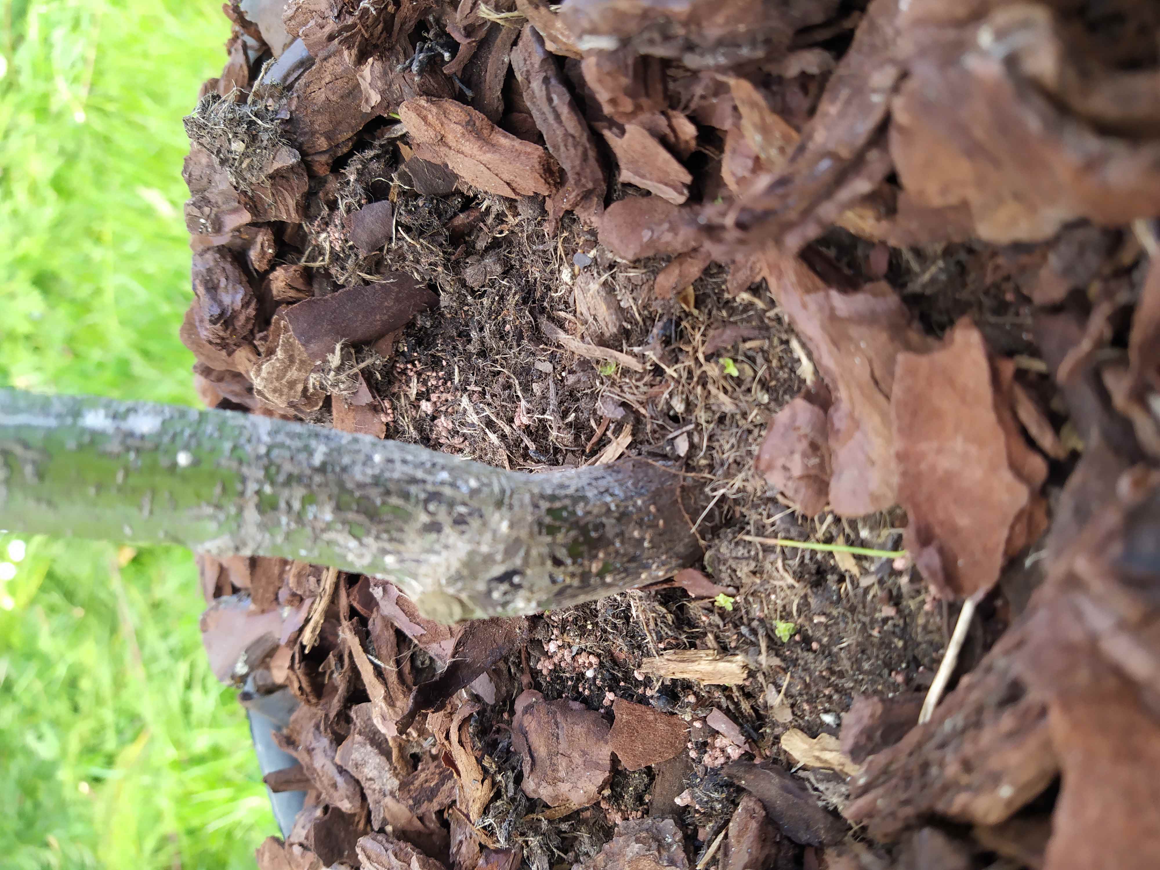J'ai fait le rempotage, une moitié terreau et l'autre écorce de pin. Il y avait un paquet de racines dans l'autre pot jusque dans le disque de paillage, par contre je n'ai pas vu de racines blanches.