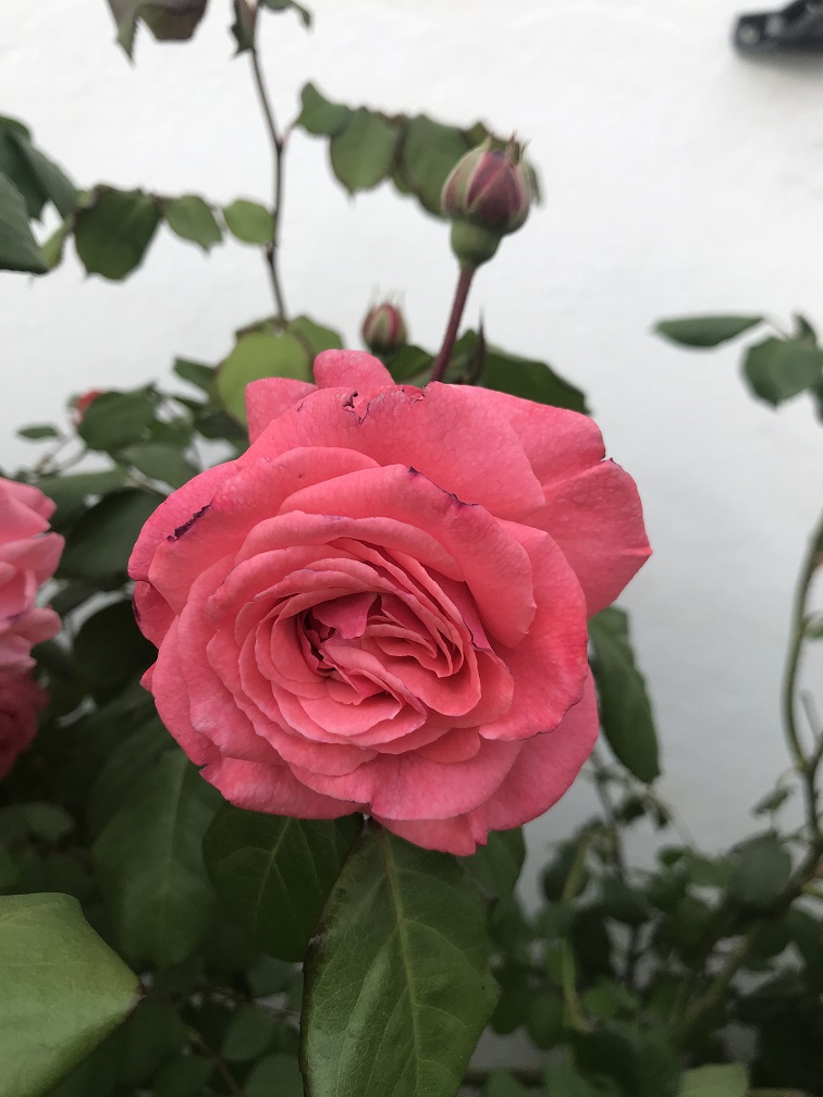 J'ai ce rosier que je n'arrive pas à vous identifier : forme arbustive, feuillage persistant, imparipenné avec 5 folioles. La fleur est rose, très odorante.