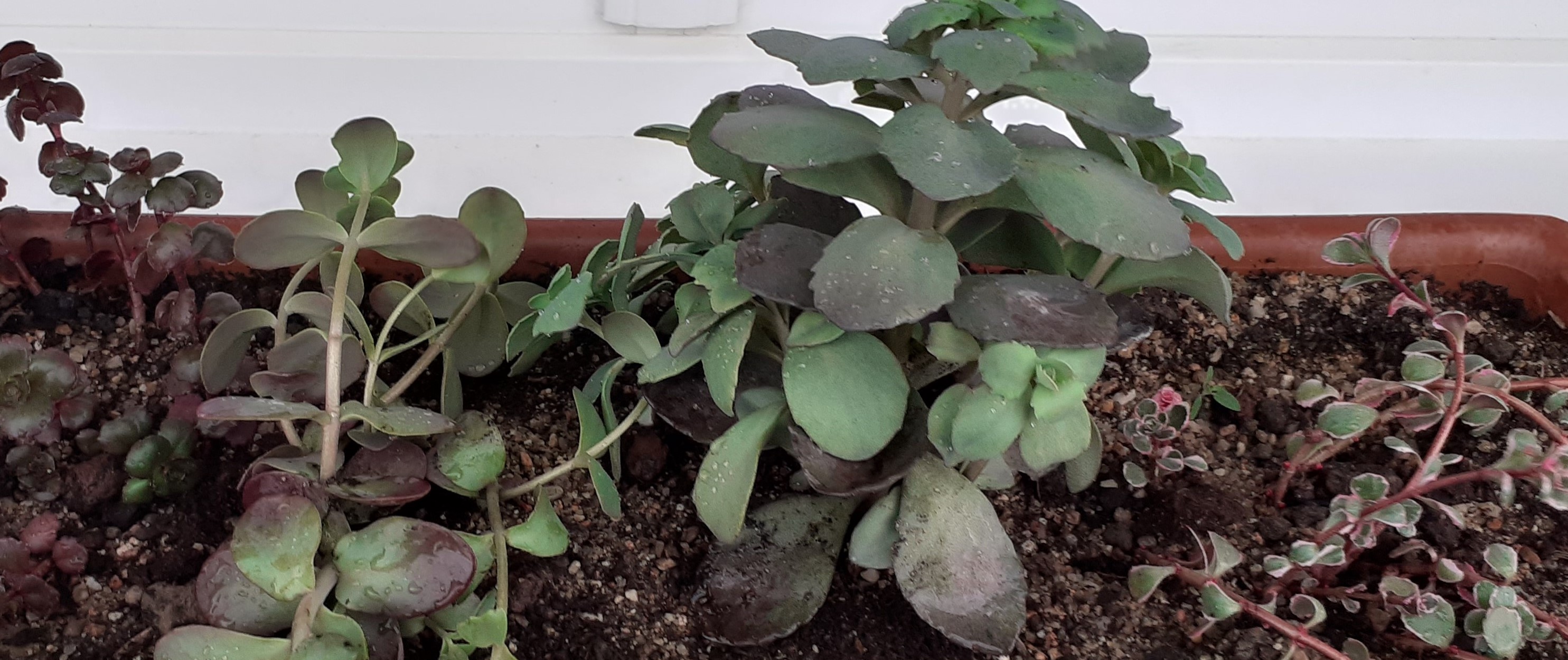 Dans l'autre jardinière j'ai planté un sédum spurium pourpre, un sédum sunsparkler cherry tart, un sédum sunsparkler Dazzleberry et un sédum tricolor.