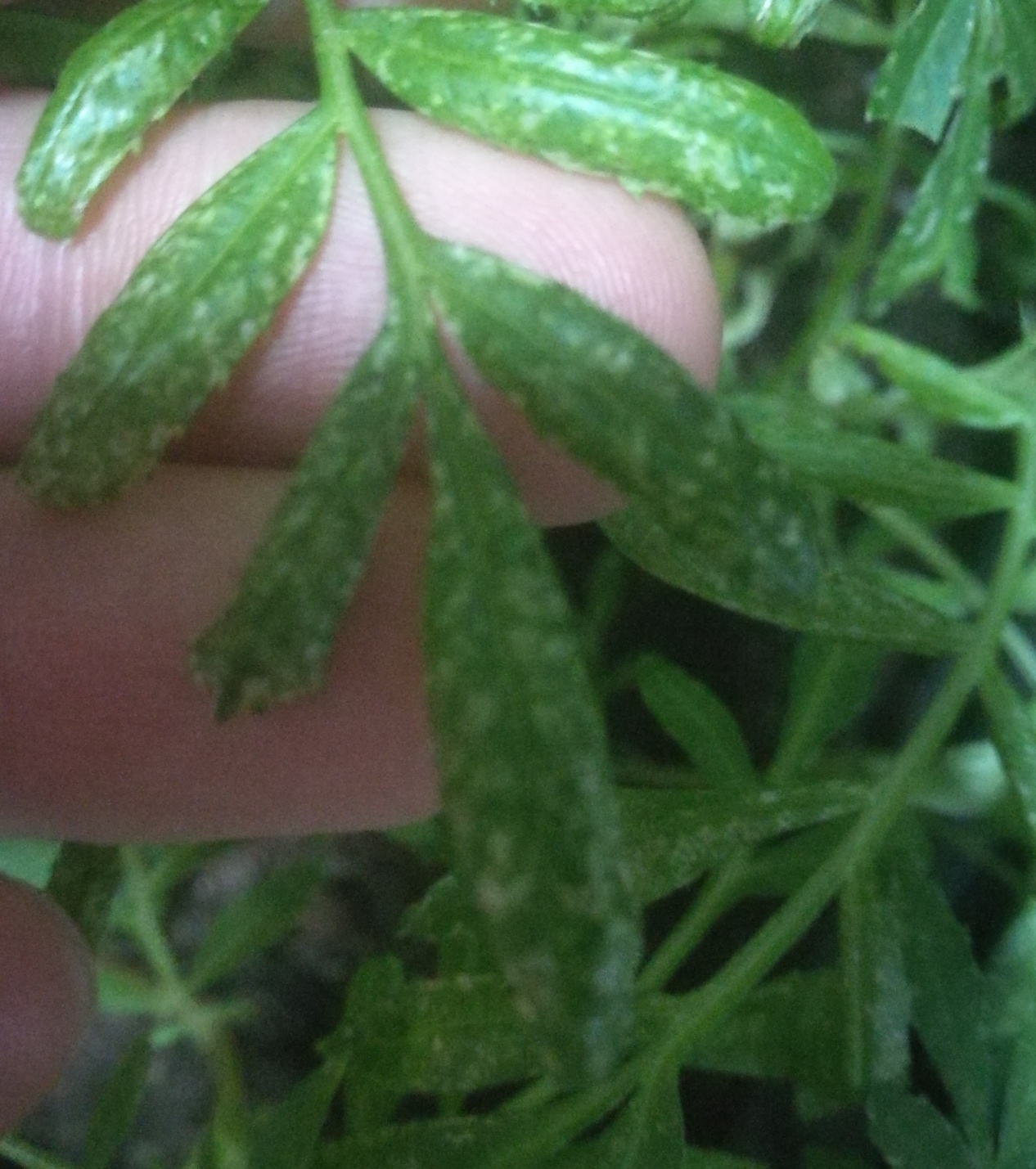 J'ai différentes plantes dans plusieurs bacs, notamment des oeillets d'Inde, qui ont un feuillage décoloré, tendant vers le jaunatre et le marron depuis une semaine.