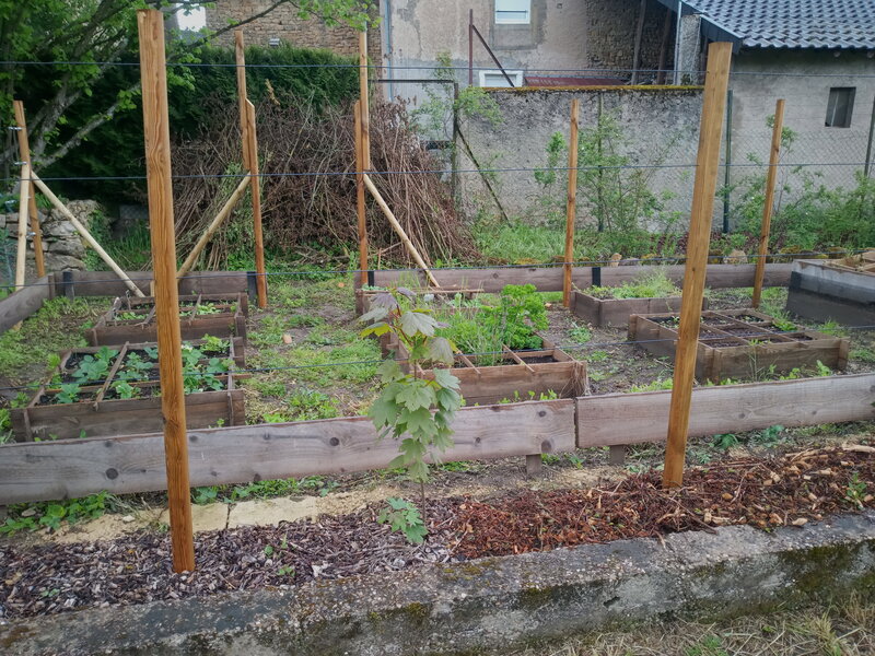 J'ai mis en place un palissage avec un premier fil à 50cm et trois autres espacés de 25cm.