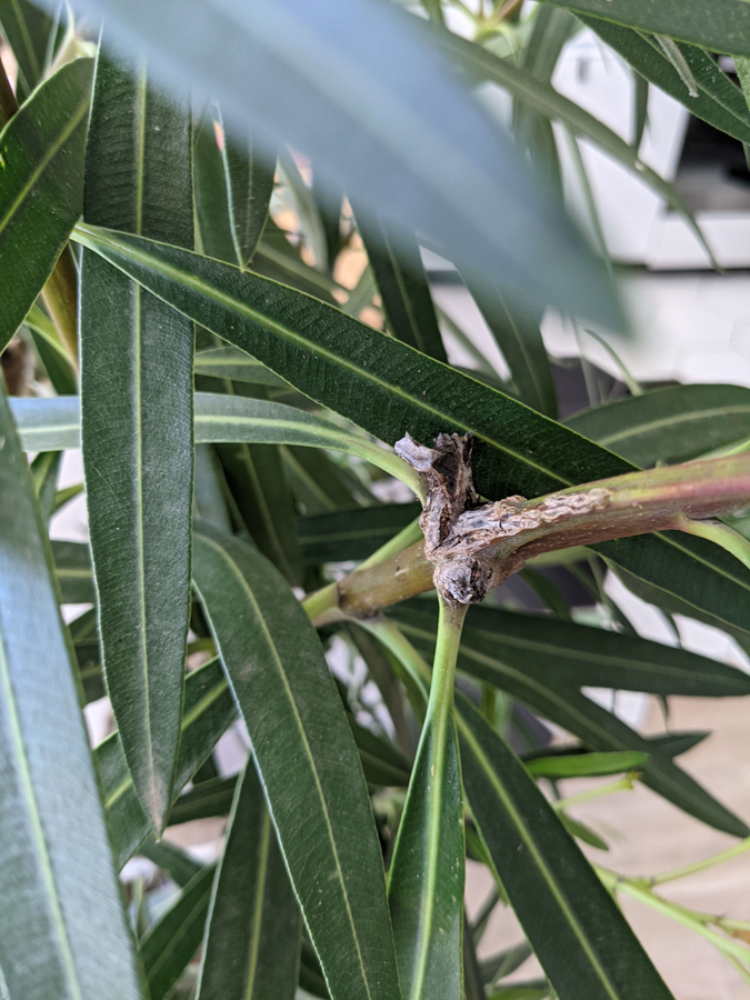 Après plusieurs recherches sur internet je n'arrive toujours pas à identifier le ou peut être les maladies de mon Laurier Rose.