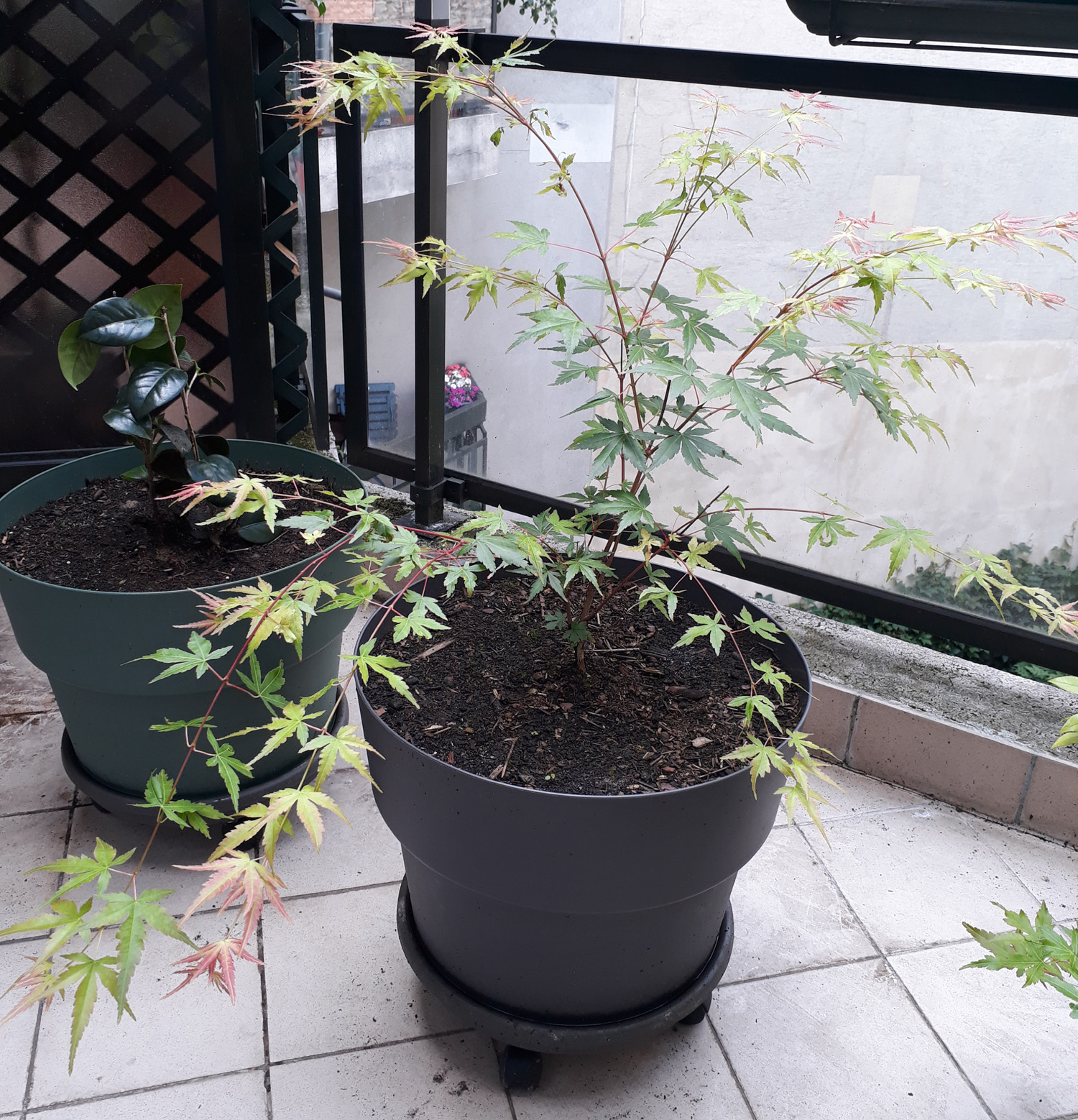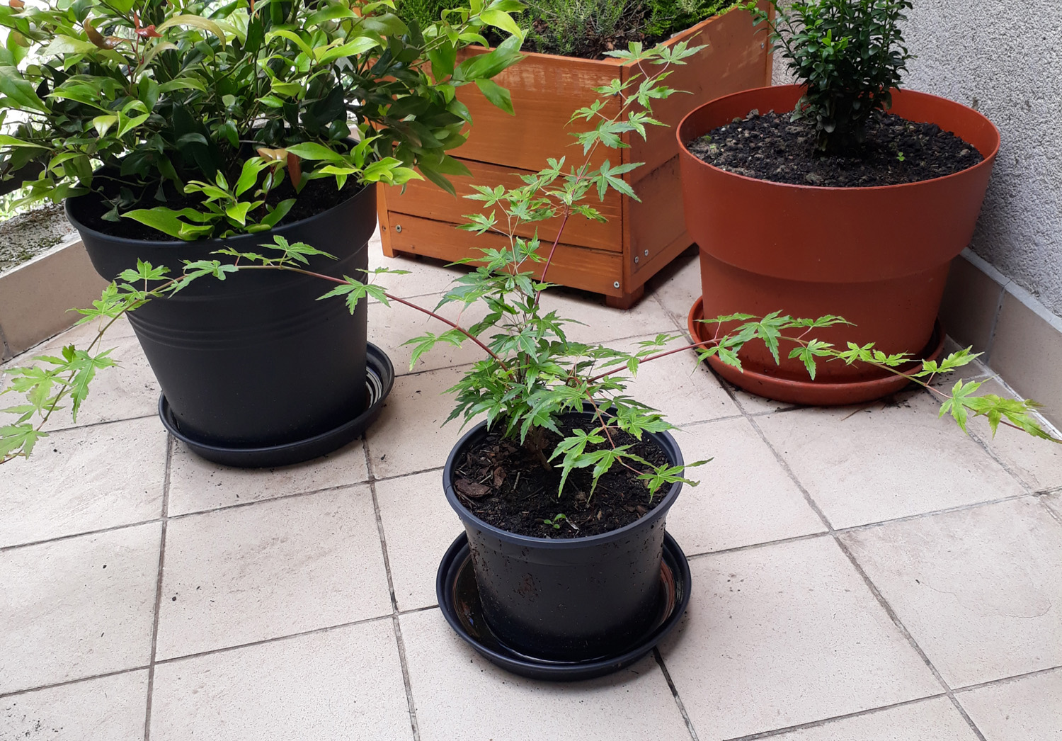 J'ai deux érables du Japon Orange Dream, assez jeunes, en pot sur un balcon. Je les ai reçus et plantés en avril dernier. Ils ont bien poussé ces derniers mois et n'ont jusque-là pas de problèmes particuliers à part quelques pucerons verts que je retire à la main.