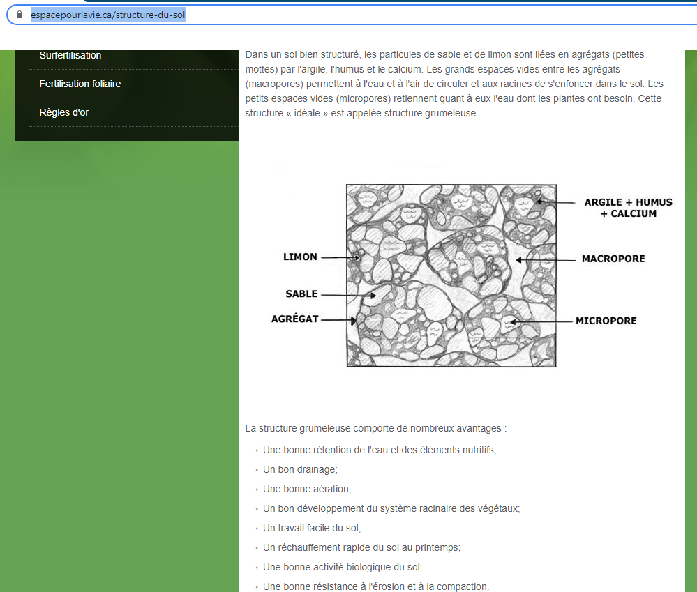En matière de sol, il y a deux critères qui compte, la texture et la structure... Ces deux critères déterminent la capacité du sol, entre autres, à résister au ravinement....